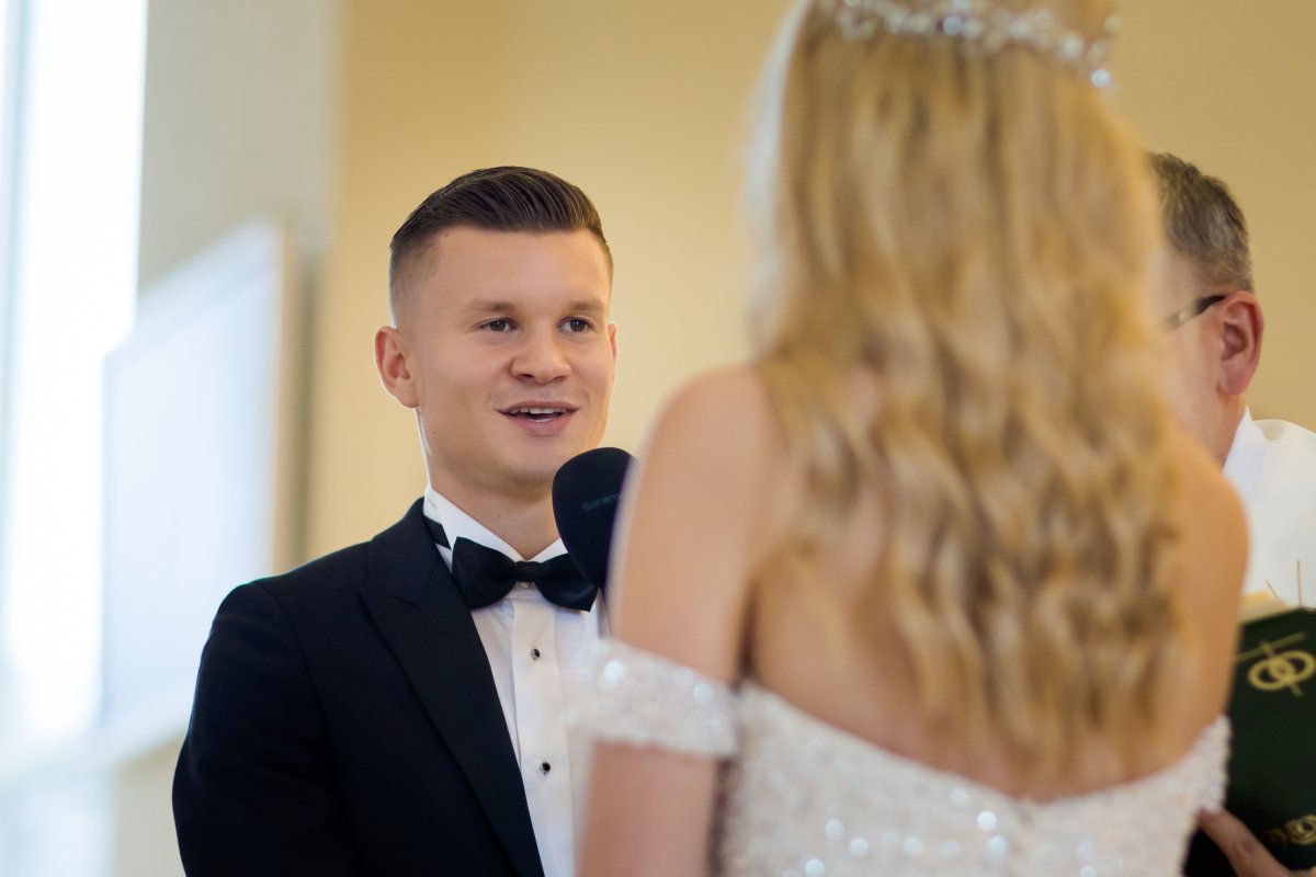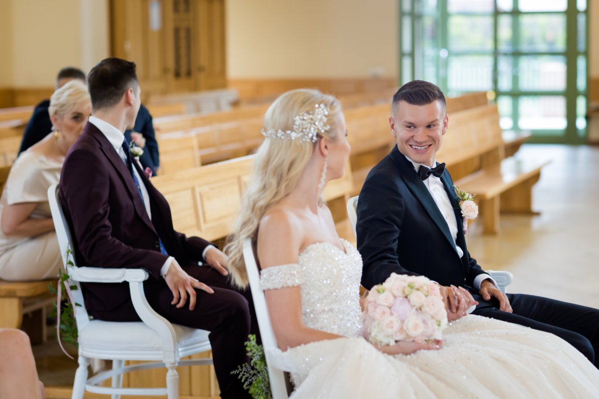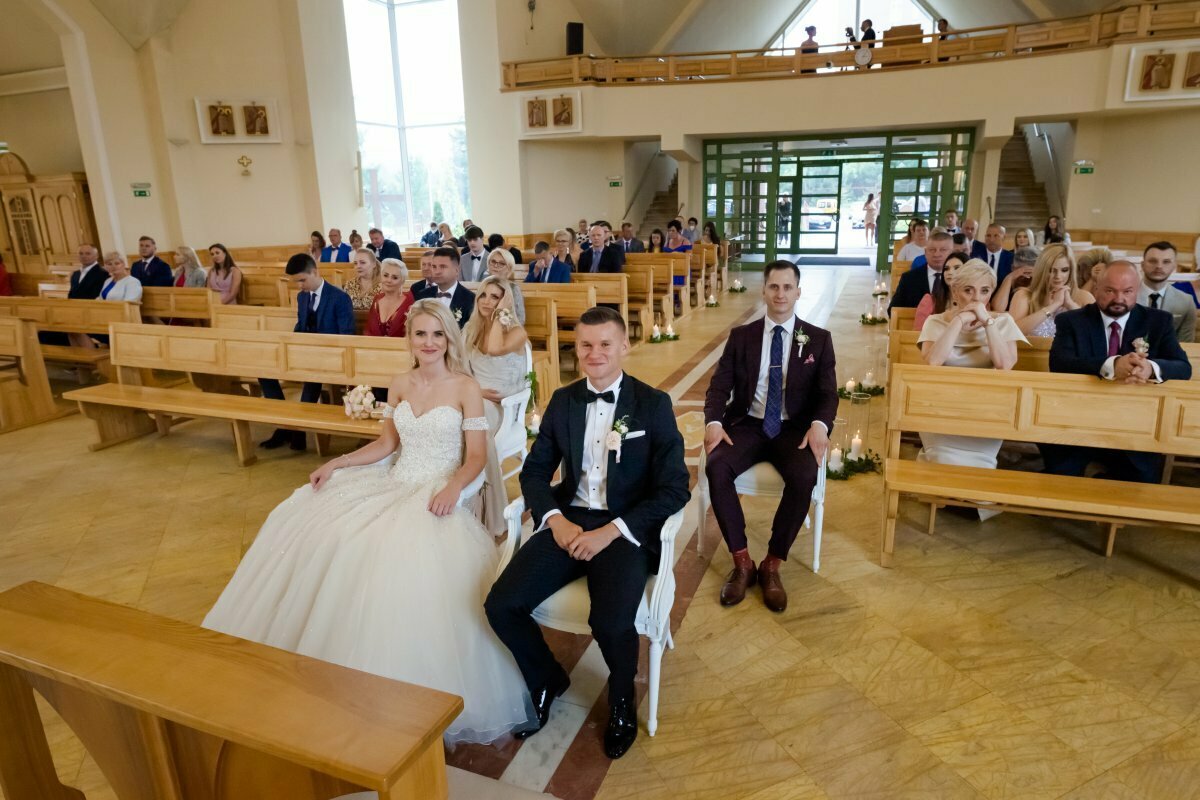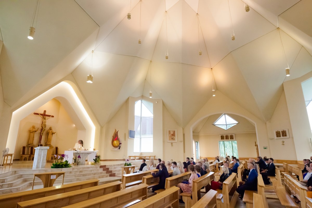 Daria i Konrad powiedzieli sobie TAK w parafii Andrzeja Boboli w Bielsku. Nowoczesny, przestronny kościół idealnie wpasował się w elegancką oprawę całego dnia.
