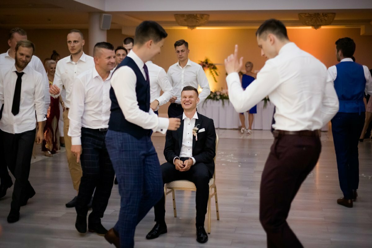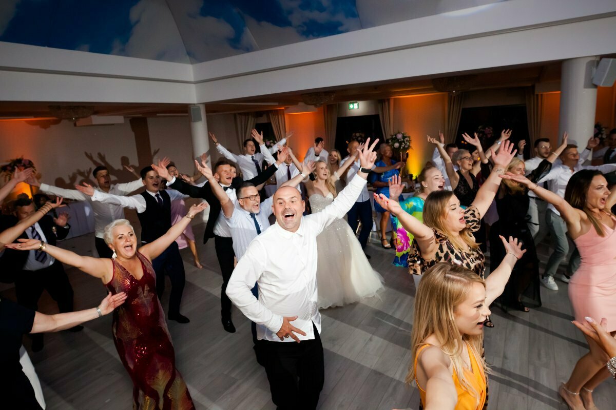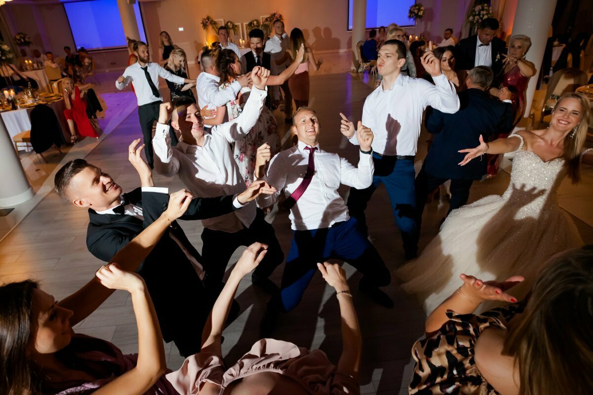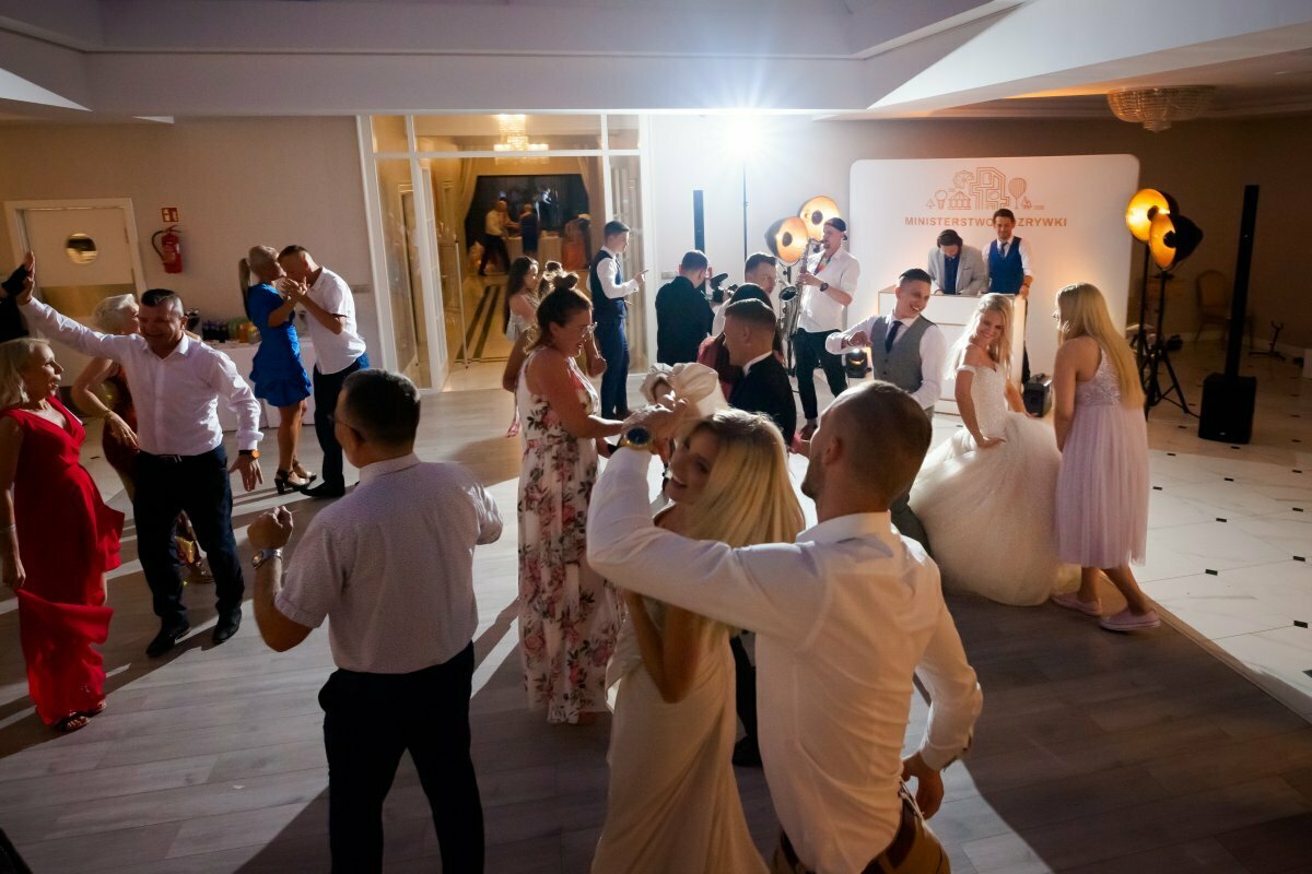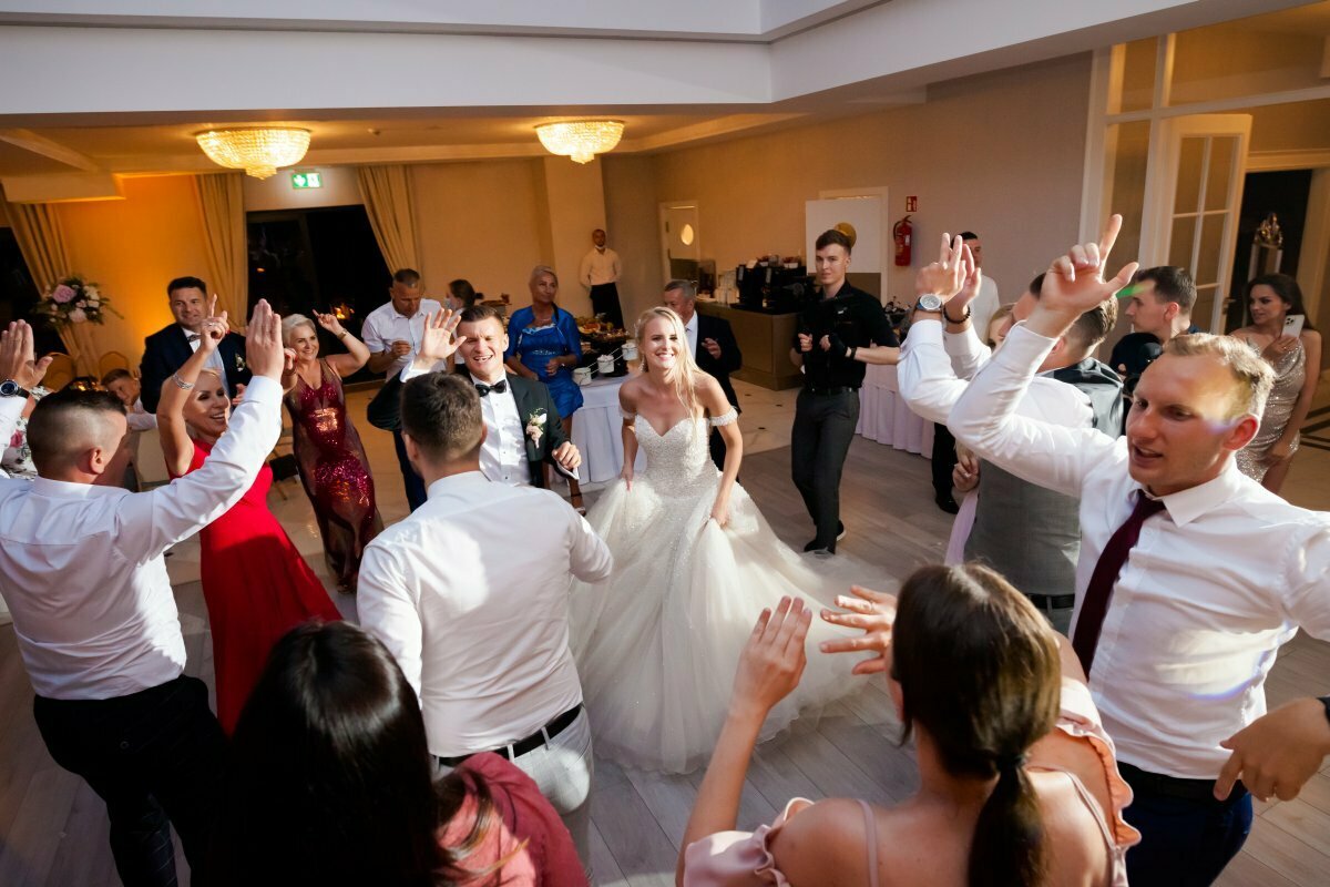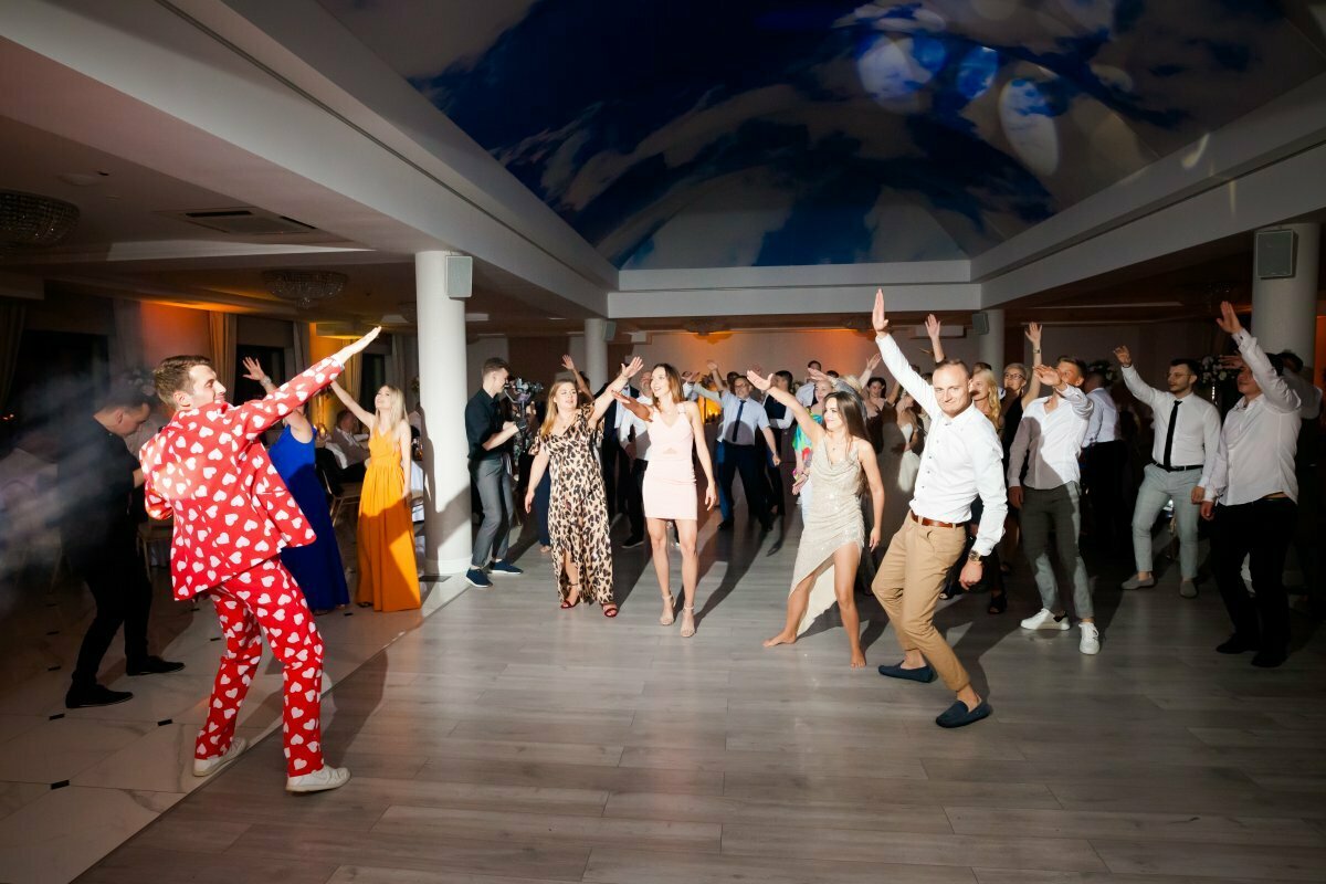 Przyjęcie weselne to był ogień! Nie może być inaczej, gdy imprezę prowadzi Ministerstwo Rozrywki! Działo się sporo! Były gry, tańce, szalone zdjęcia grupowe (pozdrawiamy fantastycznych Świadków! 🙂 ), wspaniałe, oskarowe podziękowania dla rodziców, a nawet występ Saksofonisty Miqsax, który porwał do tańca absolutnie wszystkich.
