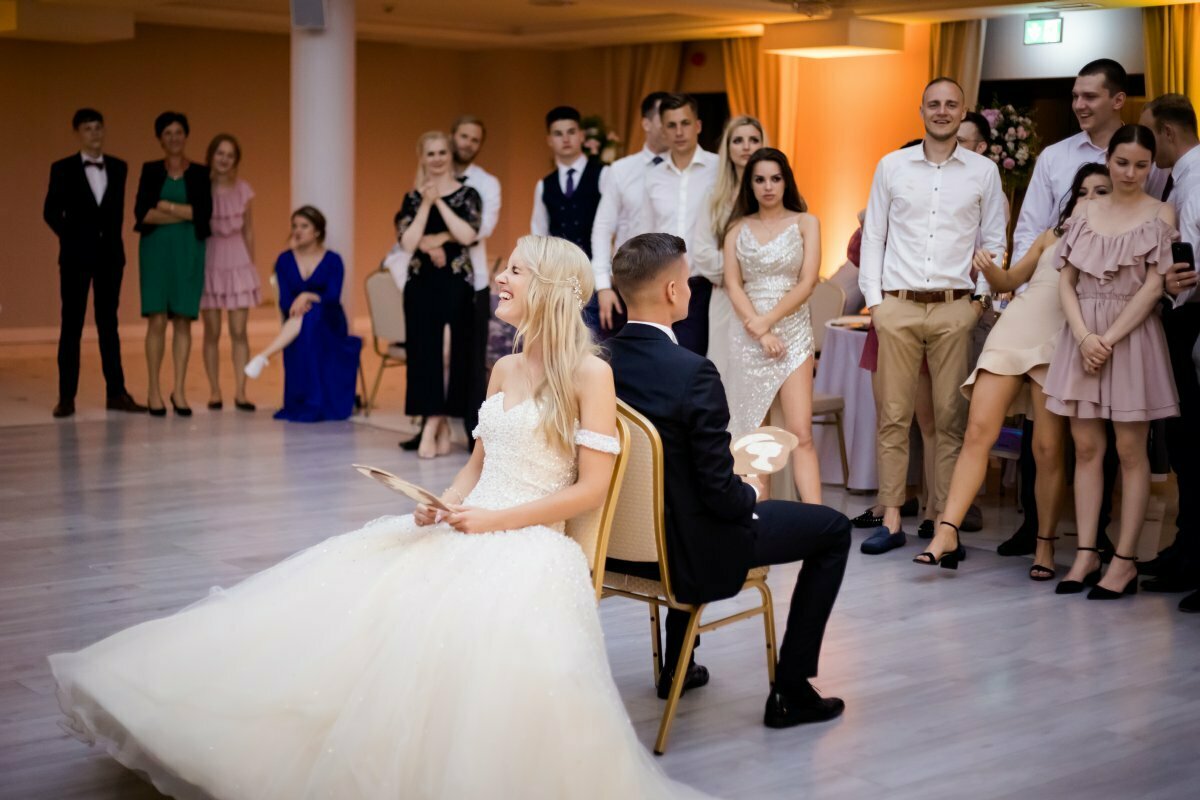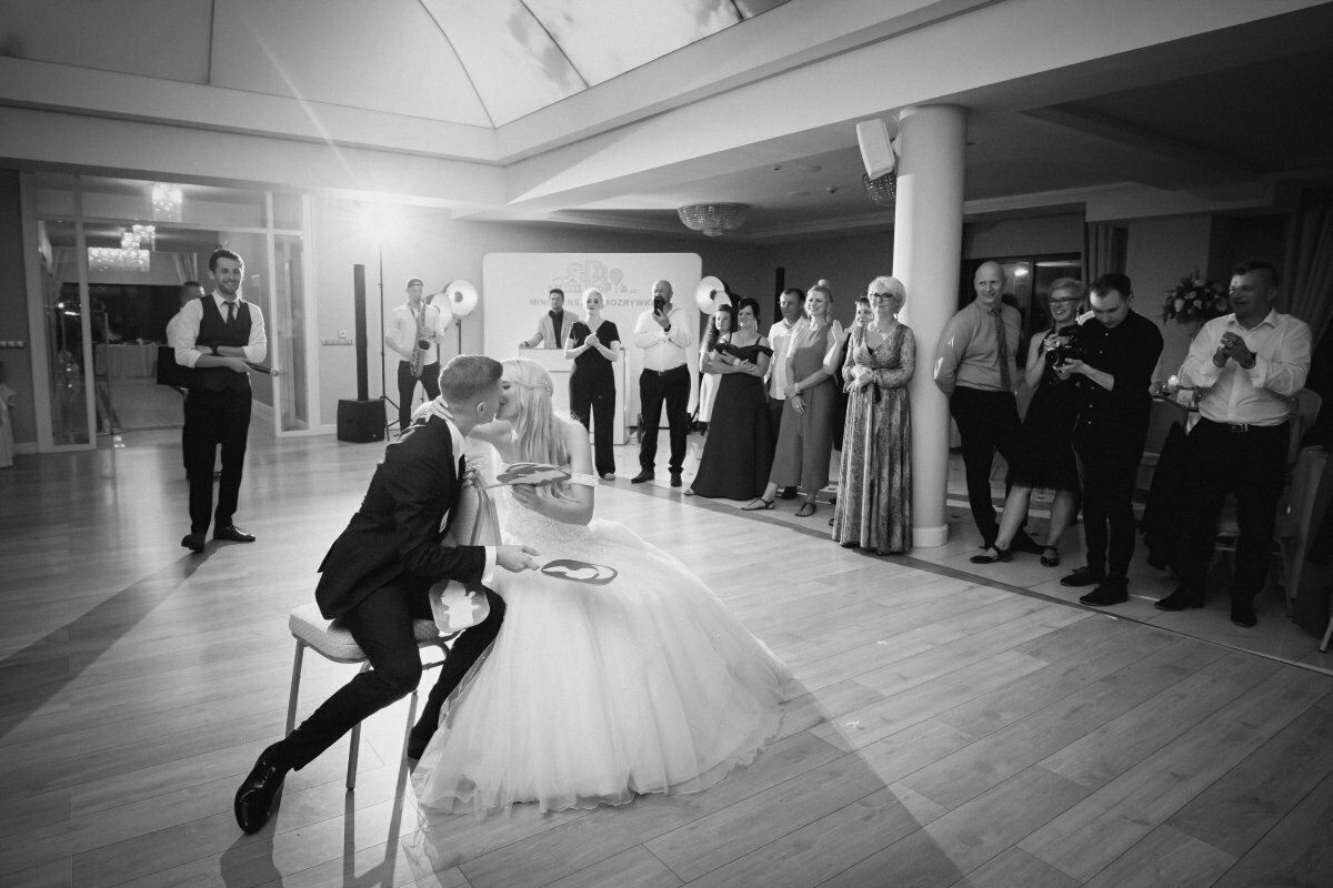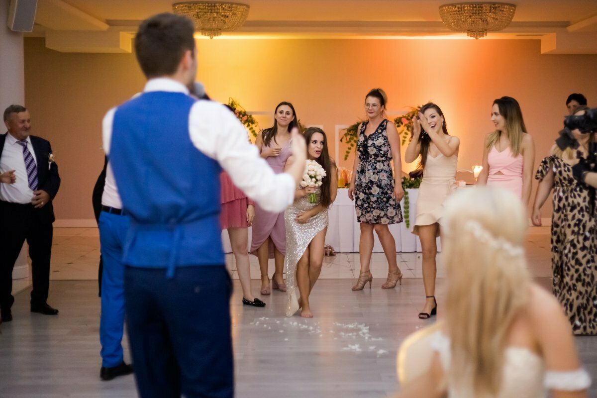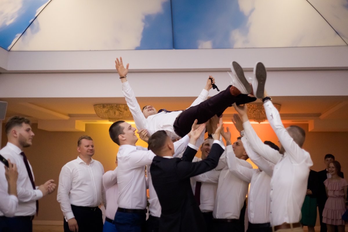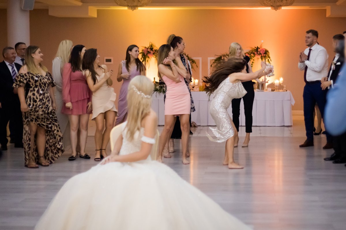 Przyjęcie weselne to był ogień! Nie może być inaczej, gdy imprezę prowadzi Ministerstwo Rozrywki! Działo się sporo! Były gry, tańce, szalone zdjęcia grupowe (pozdrawiamy fantastycznych Świadków! 🙂 ), wspaniałe, oskarowe podziękowania dla rodziców, a nawet występ Saksofonisty Miqsax, który porwał do tańca absolutnie wszystkich.