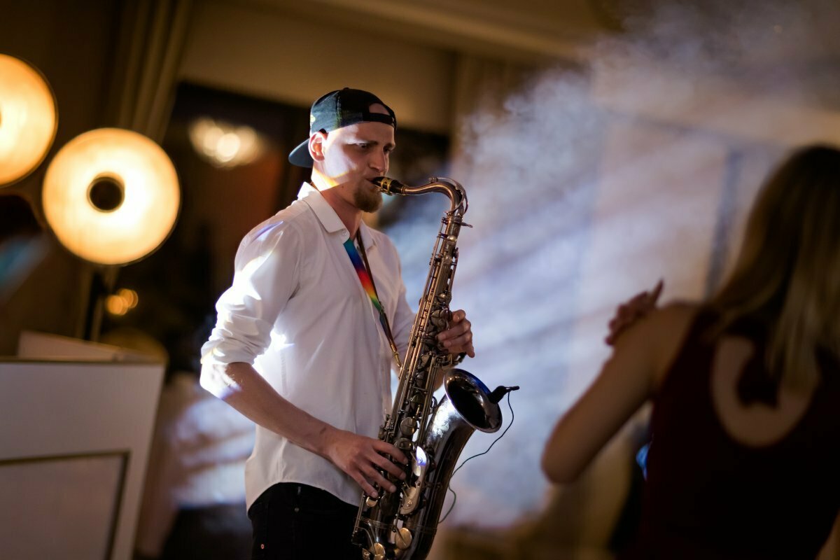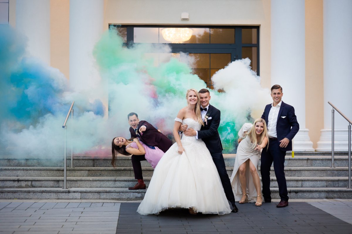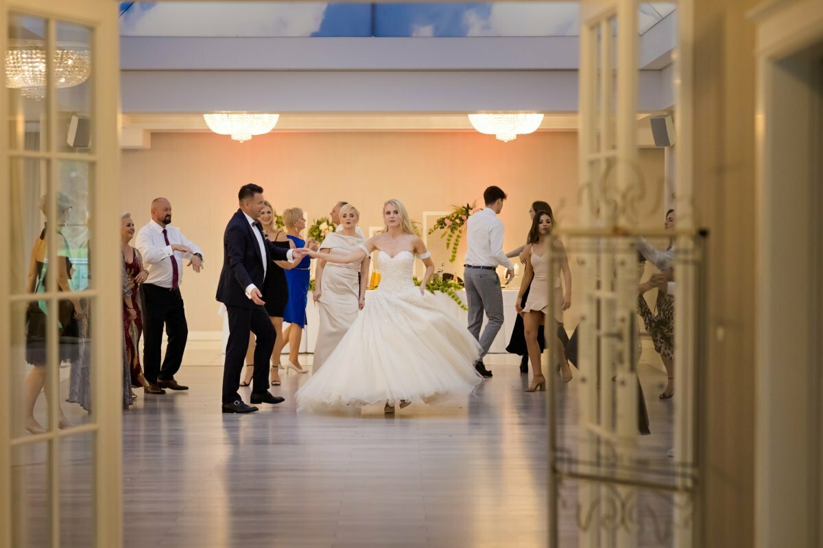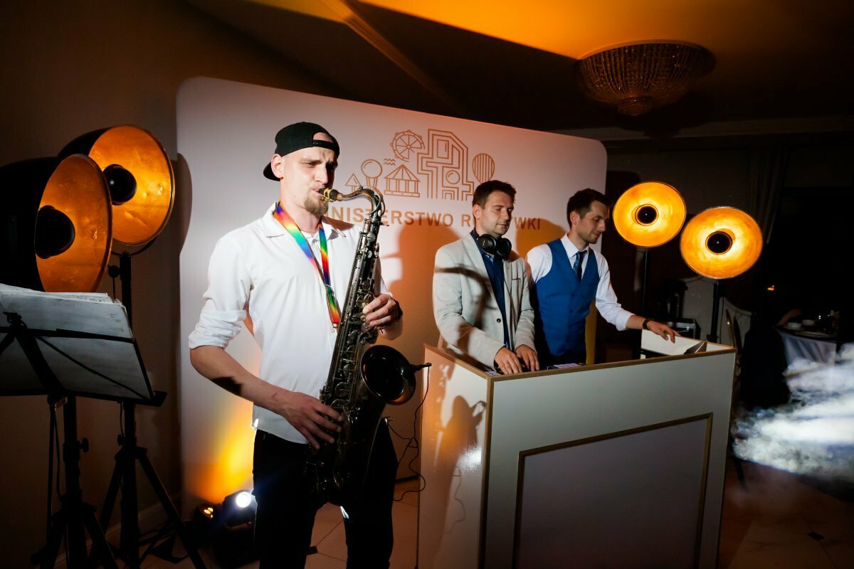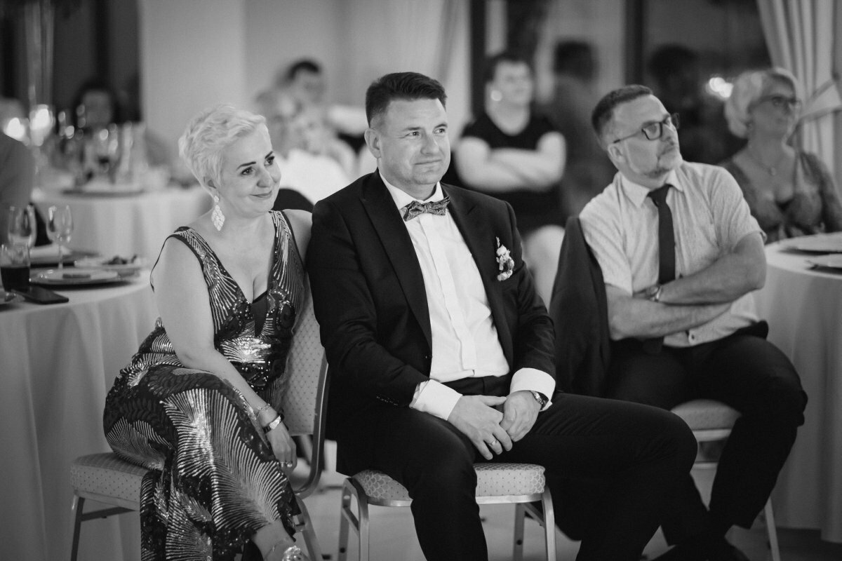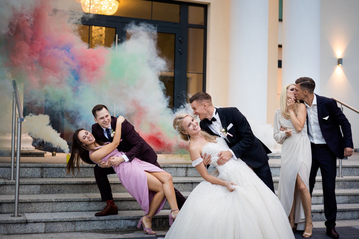 Przyjęcie weselne to był ogień! Nie może być inaczej, gdy imprezę prowadzi Ministerstwo Rozrywki! Działo się sporo! Były gry, tańce, szalone zdjęcia grupowe (pozdrawiamy fantastycznych Świadków! 🙂 ), wspaniałe, oskarowe podziękowania dla rodziców, a nawet występ Saksofonisty Miqsax, który porwał do tańca absolutnie wszystkich.