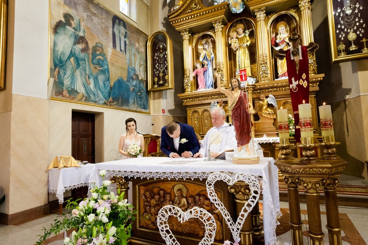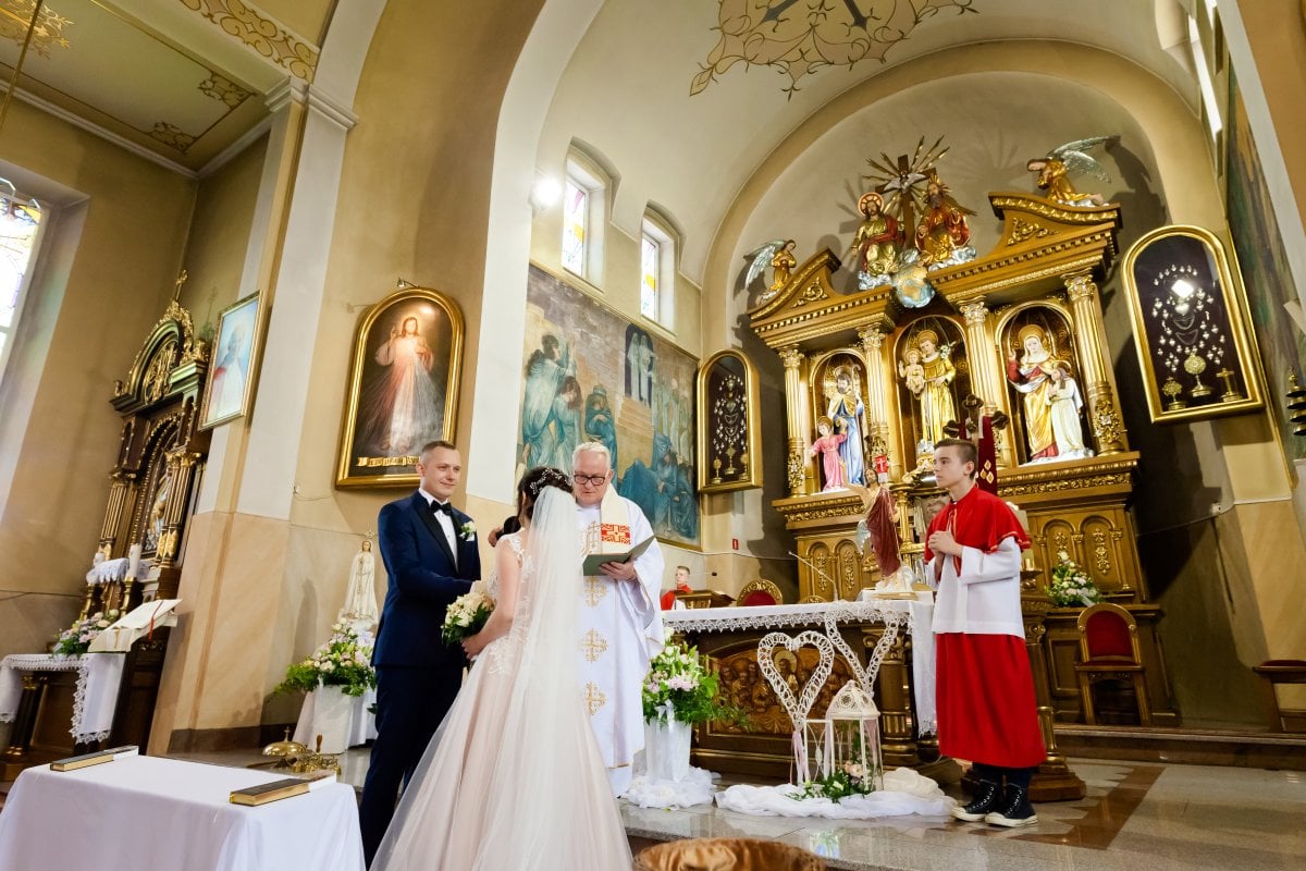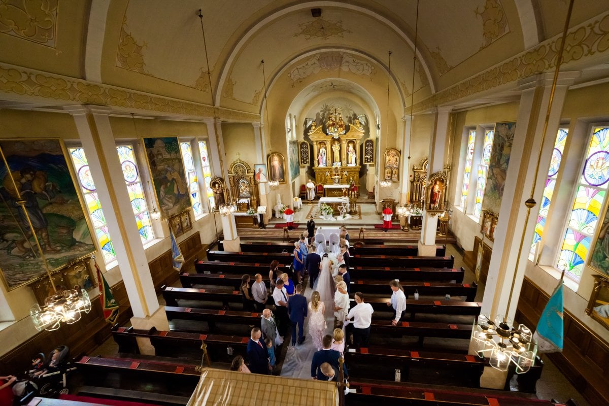 Aldona i Tomek pobrali się w przepięknym kościele w Orzeszu, rodzinnym mieście Panny Młodej. W czerwcu zwykle można się spodziewać upału… Najbardziej gorące były jednak spojrzenia i uśmiechy Młodej Pary… a potem ogień na parkiecie 🙂 Aldona wyglądała cudownie w pudrowo-różowej sukience jakby stworzonej dla niej. To był zdecydowanie najmodniejszy kolor 2019 roku!