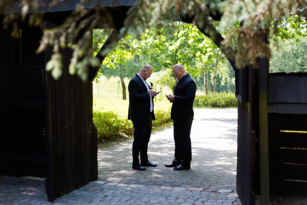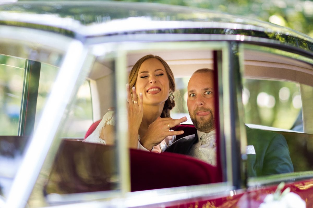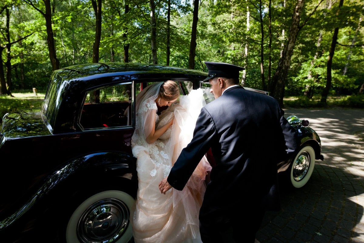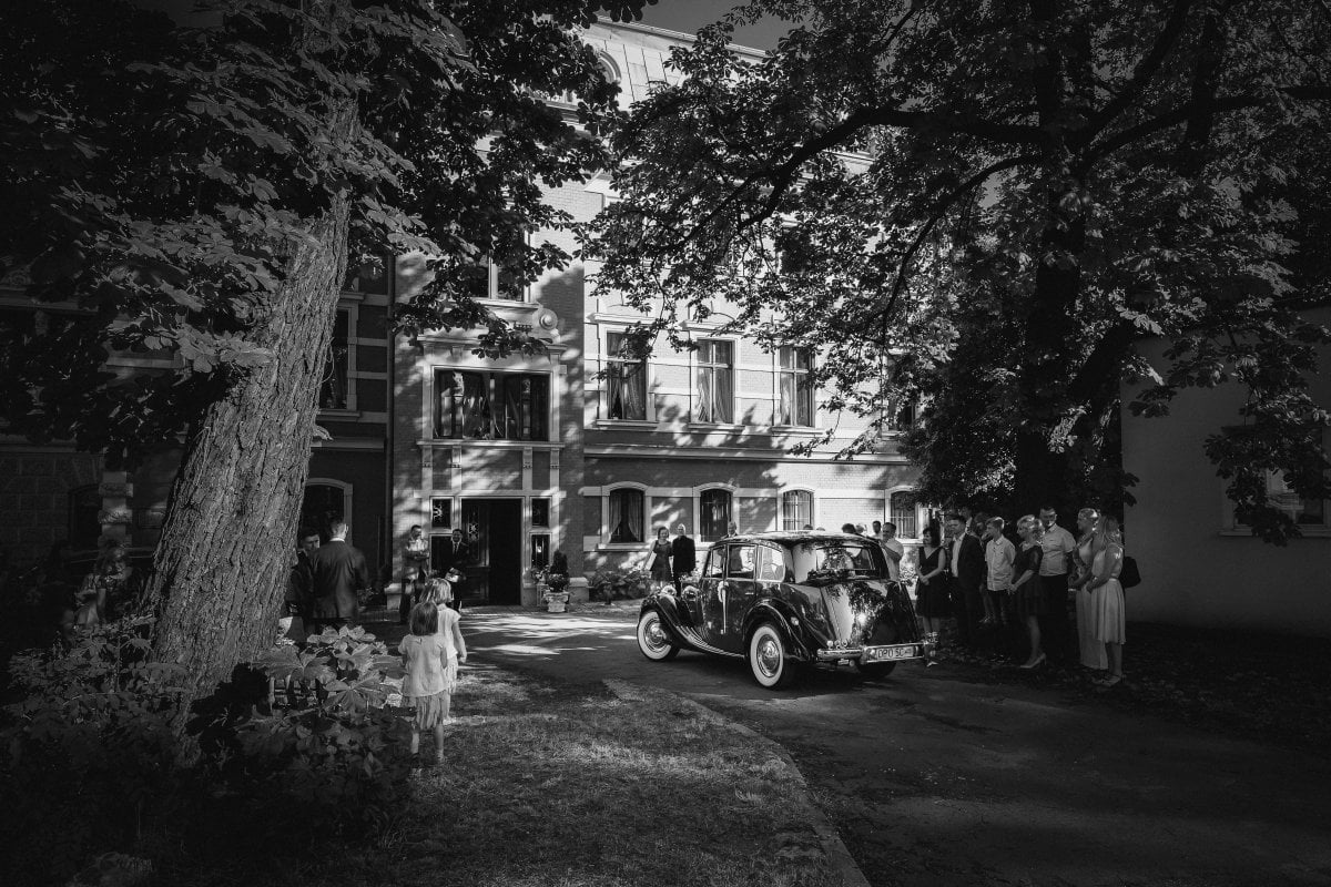 Na pewno zwrócicie też uwagę na zabytkowy samochód, którym poruszała się Para Młoda (a skoro już tak było, to dlaczego nie wykorzystać takiego cuda do zdjęć? 🙂 ). Wspaniałe autko i kierowca z klasą, który z ogromną pasją opowiada o nim zaciekawiając tym wszystkich słuchających (to pewnie dlatego część gości znikała na początku wesela 😉 ).