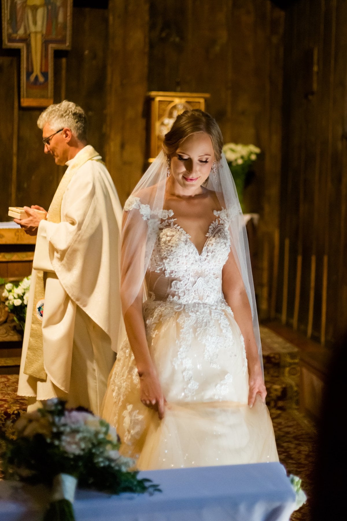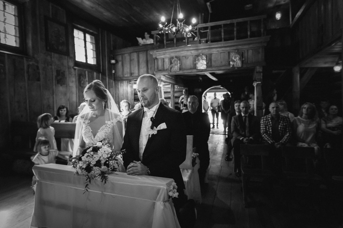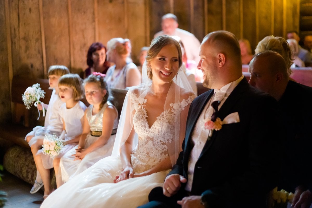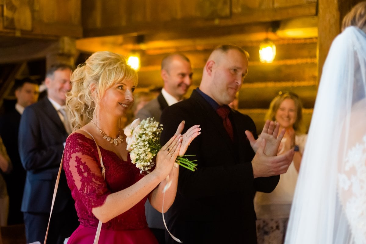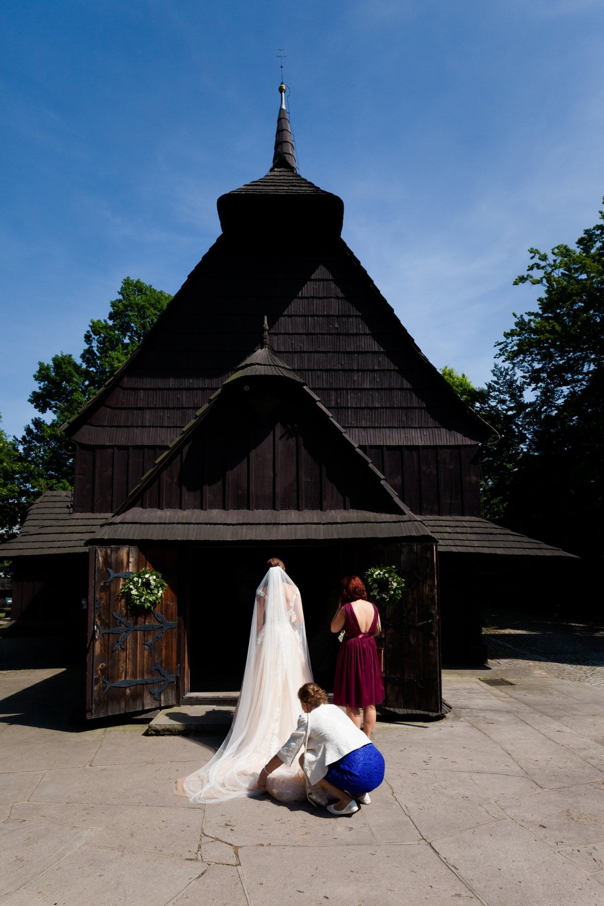 Ceremonia miała miejsce w urokliwym kameralnym kościółku Michała Archanioła w Katowicach. Piękny klimat, zapach drewna i lokalizacja w zielonym parku Kościuszki – zdecydowanie ten kościół dołączył do grona naszych ulubionych w okolicy! Zaślubiny były niezwykle klimatyczne, nawet światło magicznie zagrało. A dla dopełnienia pięknie zaśpiewała operowym głosem Pani Joanna Dziwisz.