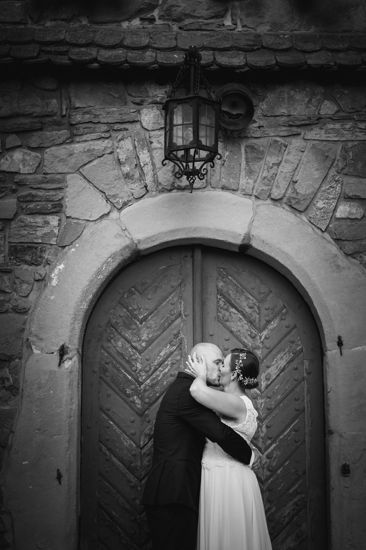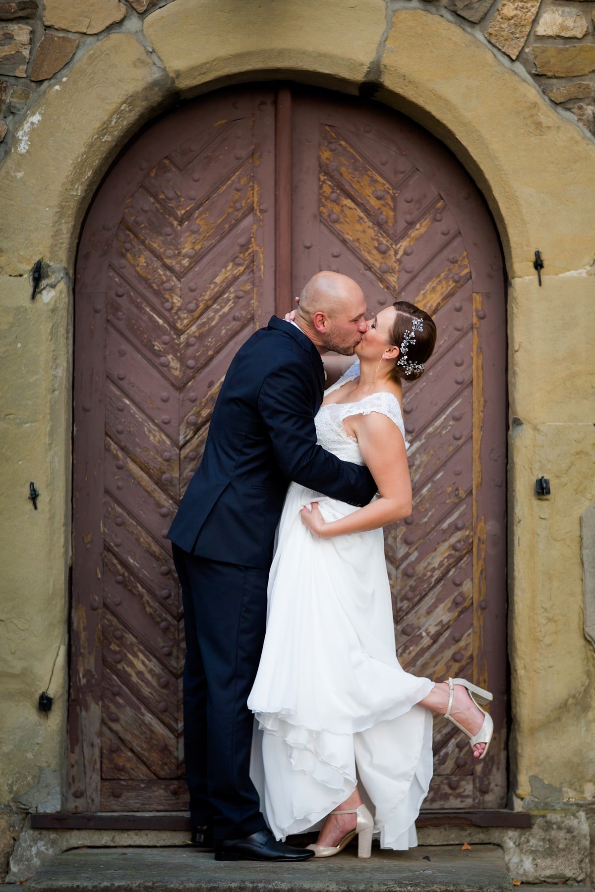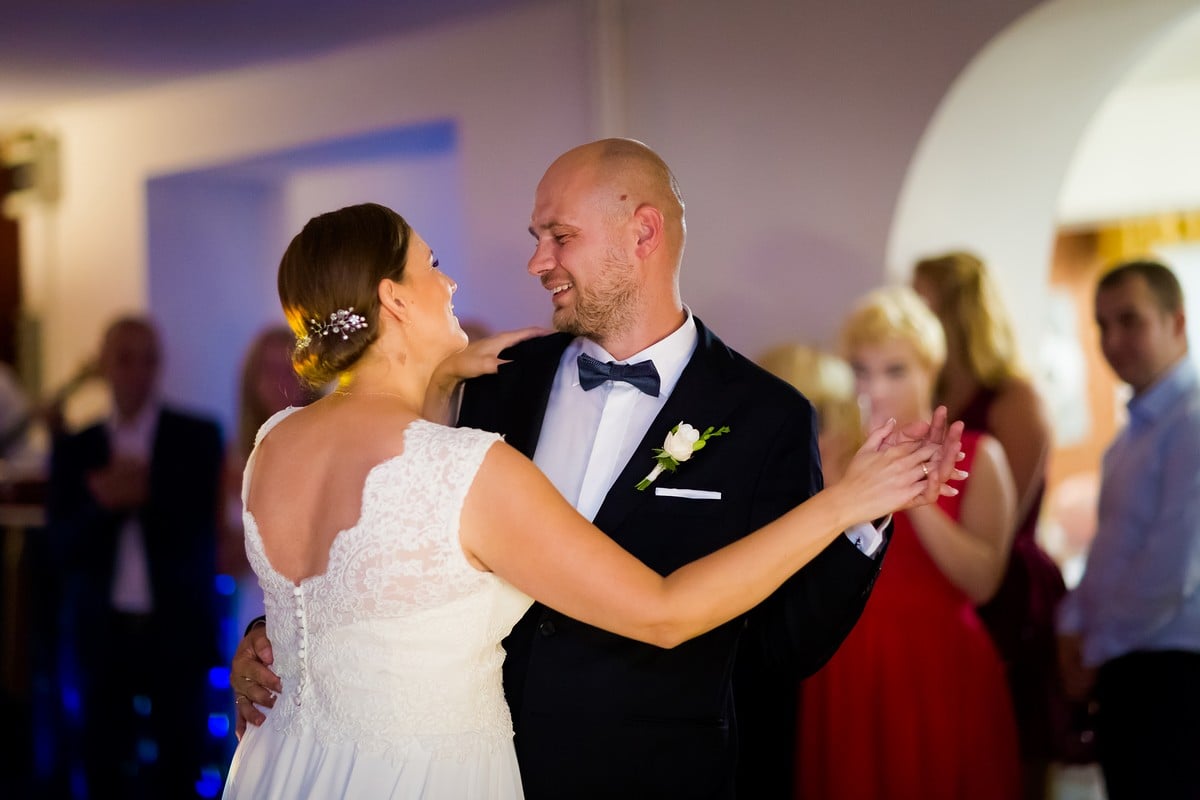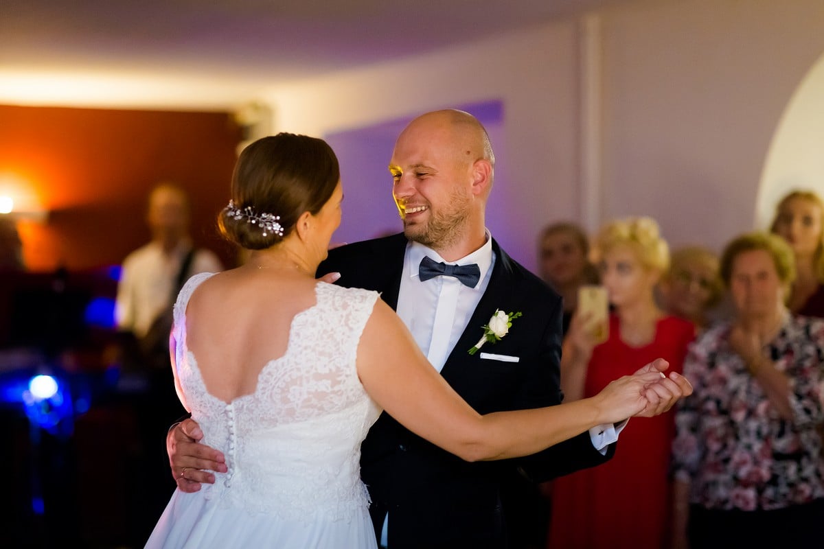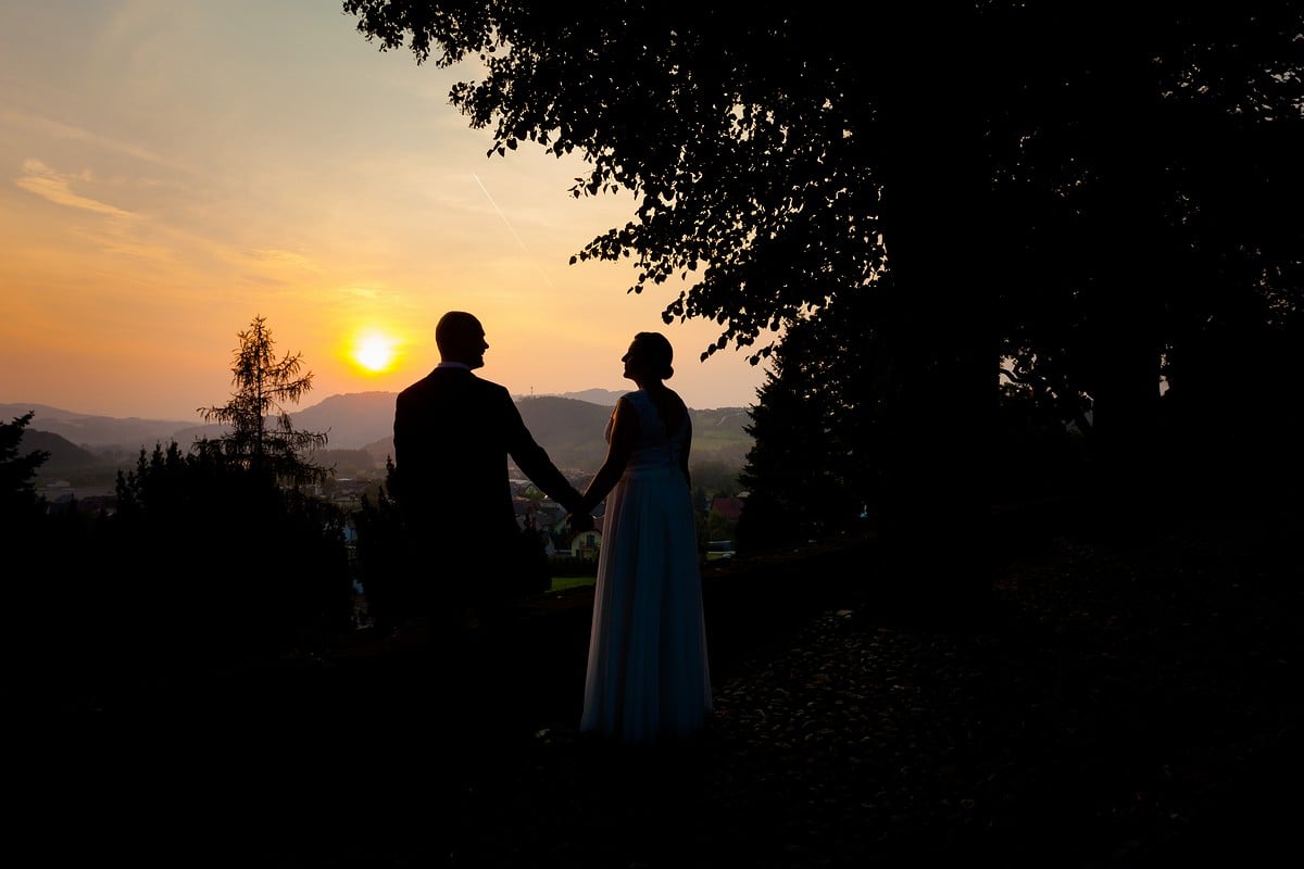 Bardzo lubimy, gdy na sesje ślubne udajemy się w miejsca dla nas jak dotąd nieznane, w miejsca bliskie Wam. Tak też było tym razem – wybraliśmy się w okolice przepięknego zabytkowego kościółka na wzgórzu z widokiem na okolicę. Zachodzące słońce było wymarzoną scenerią do zdjęć, a Monika z Danielem mogli chwilę odetchnąć, pospacerować, nacieszyć się sobą przed dalszą szaloną zabawą weselną.