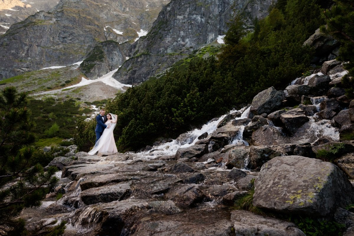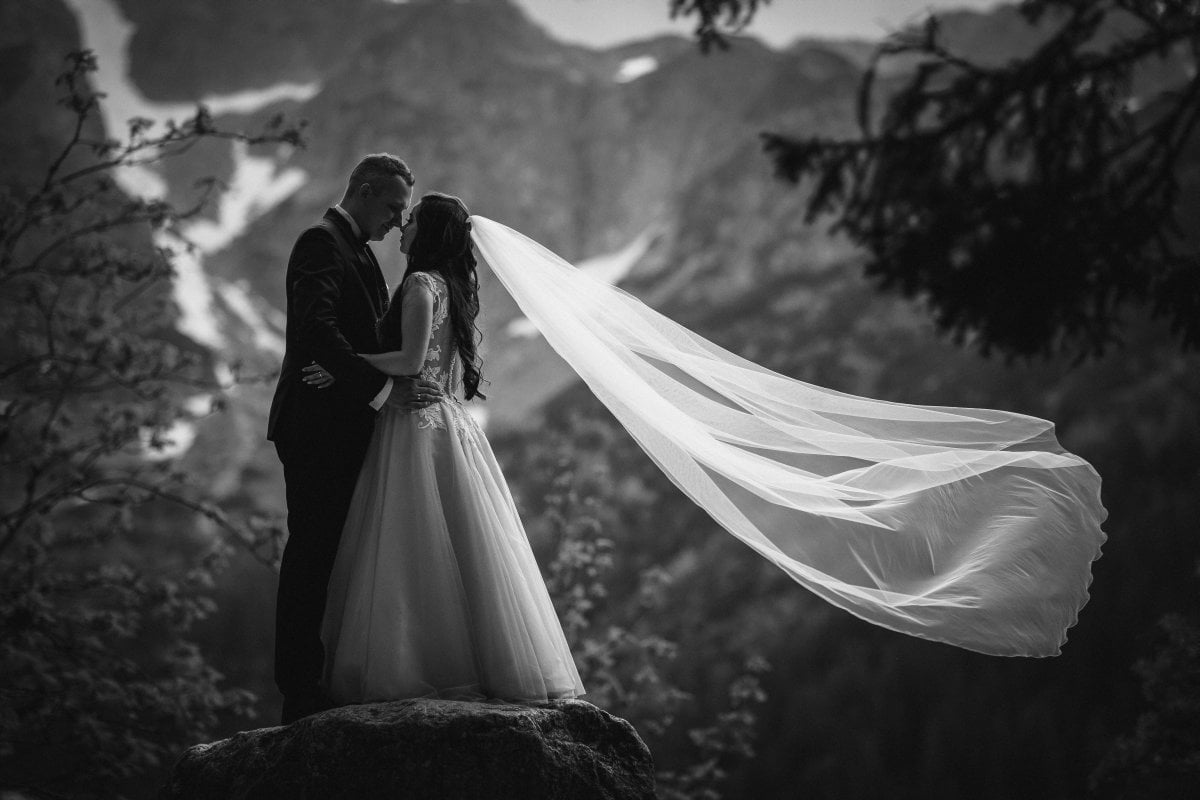 Marzeniem wielu Par Młodych jest sesja ślubna w Tatrach. A jak wiadomo, marzenia są po to, aby je spełniać! I jak to w życiu bywa, niekoniecznie spełniają się same, a trzeba czasem im trochę pomóc… Na przykład prawie biegnąc nad Morskie Oko, aby zdążyć na światło docierające do jeziora 🙂 Trzeba powiedzieć, że czas mieliśmy niezły, bo godzina 40 minut od parkingu!