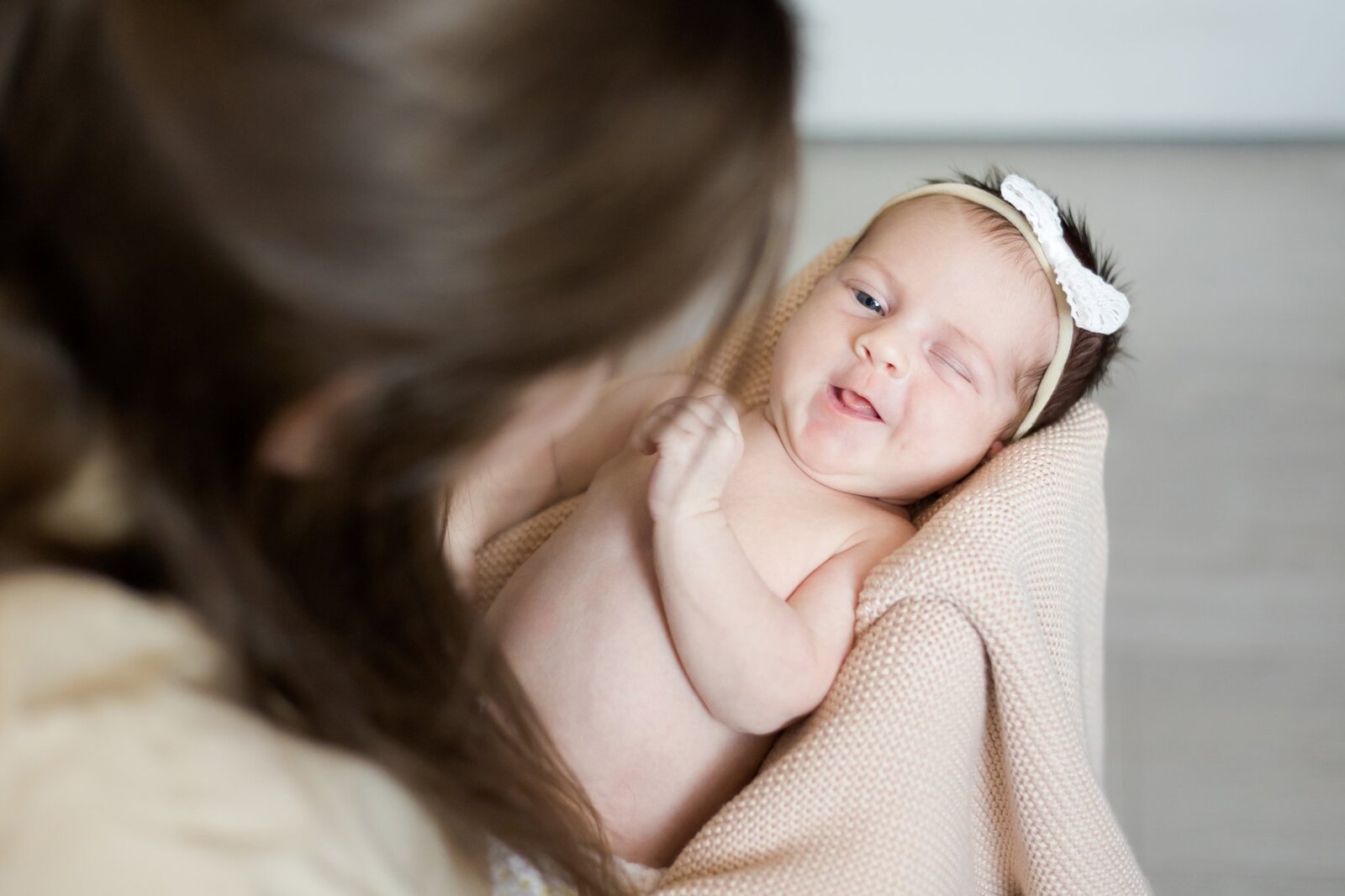 Sesje noworodkowe w domu Pszczyna – zapraszamy Was dziś na kolejną galerię cudownej Kruszynki. Helenka oczarowała nas w sobie już od pierwszego momentu – z resztą chyba i z Wami będzie podobnie gdy tylko na nią spojrzycie. Ach te cudowne delikatne włoski! Nie często spotyka się takie fryzurki u nowo narodzonych Maluszków.
