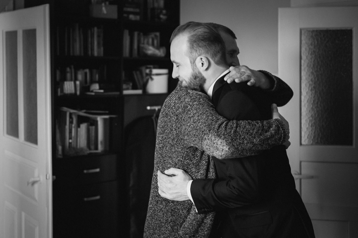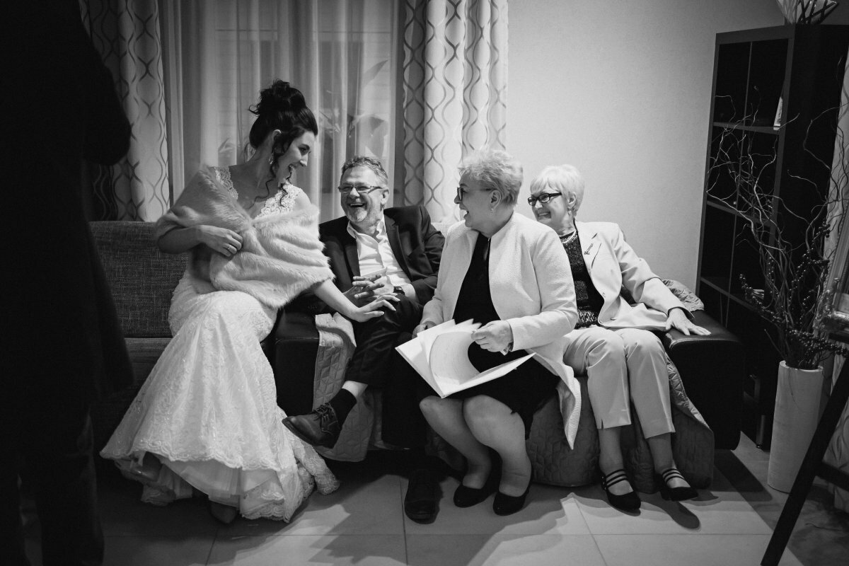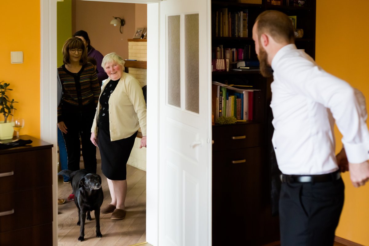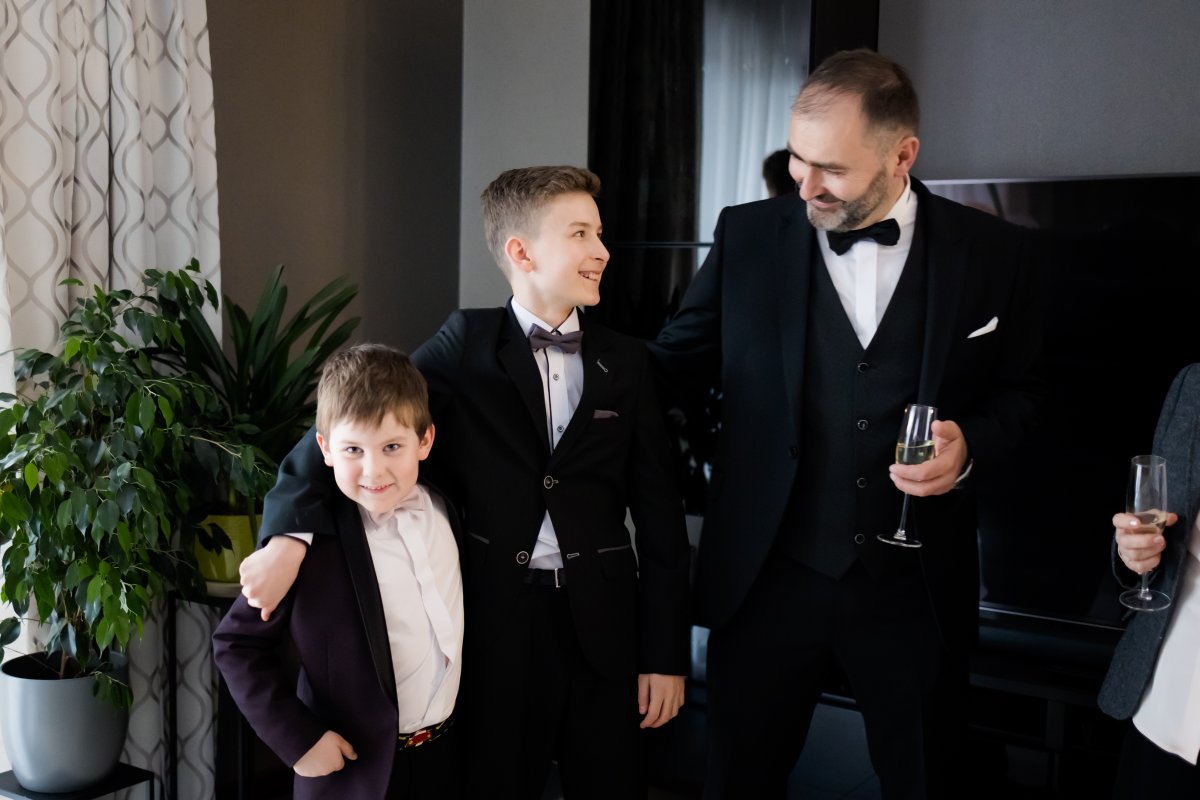 Na początku reportażu na pewno zwrócicie uwagę na rozkoszne czworonogi, które pojawiły się na przygotowaniach(a jednego łakomczucha znajdziecie też na przyjęciu weselnym!). Musimy przyznać – mamy słabość do zwierząt. Piesków, kotków, chomików… fajnie gdy są z Wami w tym dniu! Basia spokojnie przygotowywała się w domu, w towarzystwie innych Pań oraz pod czujnym okiem brata i słodkiego psiaka. Panowie natomiast udali się do barbera. Bo przecież Pan Młody również ma swoje przygotowania i choć czasem wydaje się Wam, że nic szczególnego się tam nie dzieje.. to oj dzieje się! Zobaczcie sami na zdjęciach poniżej 🙂