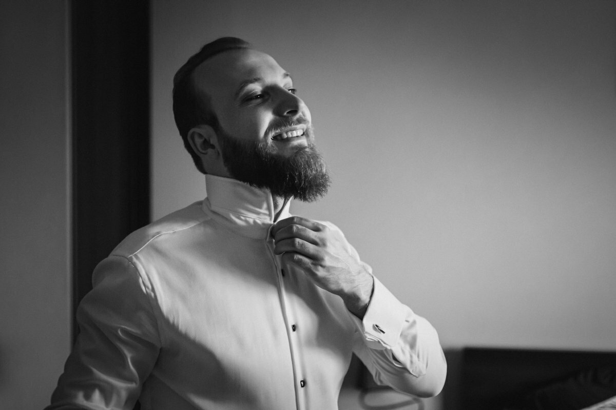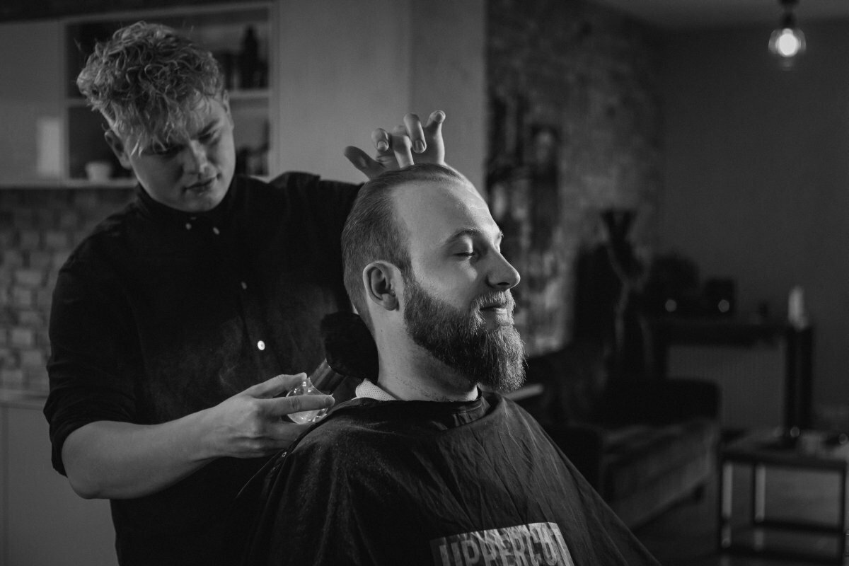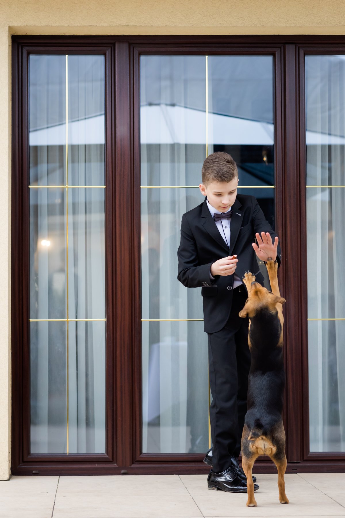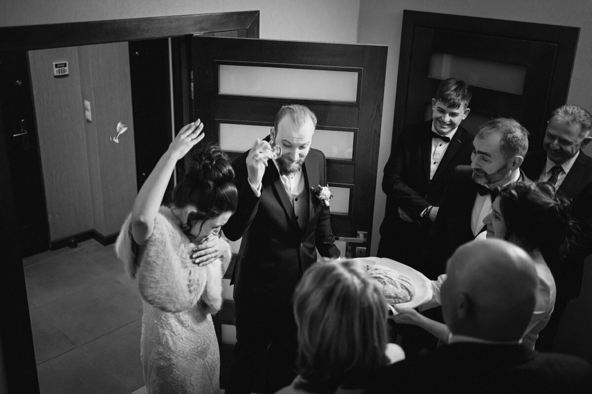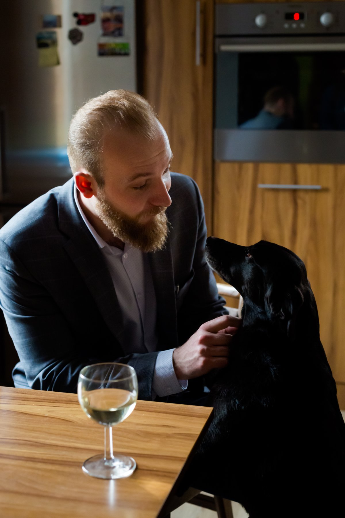 Na początku reportażu na pewno zwrócicie uwagę na rozkoszne czworonogi, które pojawiły się na przygotowaniach(a jednego łakomczucha znajdziecie też na przyjęciu weselnym!). Musimy przyznać – mamy słabość do zwierząt. Piesków, kotków, chomików… fajnie gdy są z Wami w tym dniu! Basia spokojnie przygotowywała się w domu, w towarzystwie innych Pań oraz pod czujnym okiem brata i słodkiego psiaka. Panowie natomiast udali się do barbera. Bo przecież Pan Młody również ma swoje przygotowania i choć czasem wydaje się Wam, że nic szczególnego się tam nie dzieje.. to oj dzieje się! Zobaczcie sami na zdjęciach poniżej 🙂
