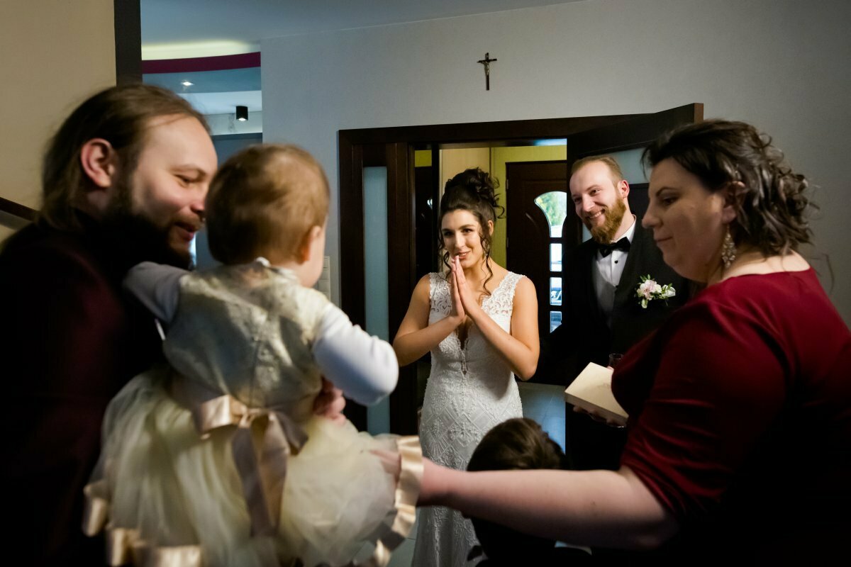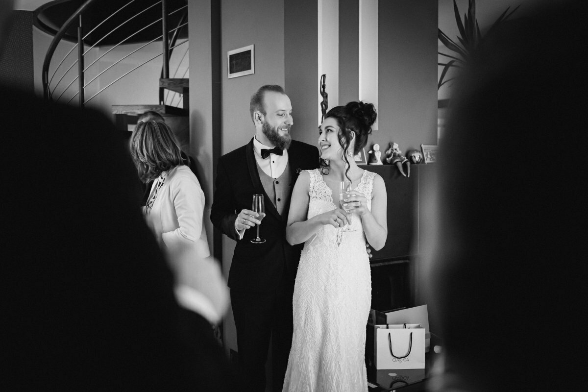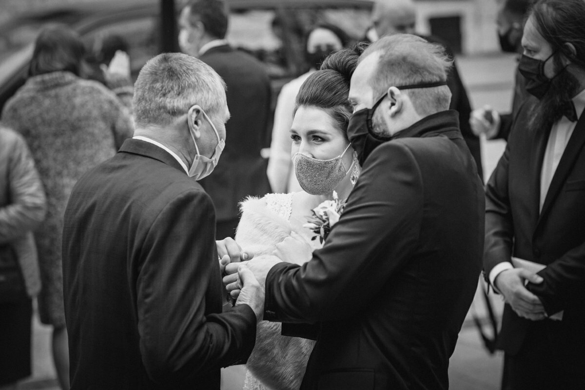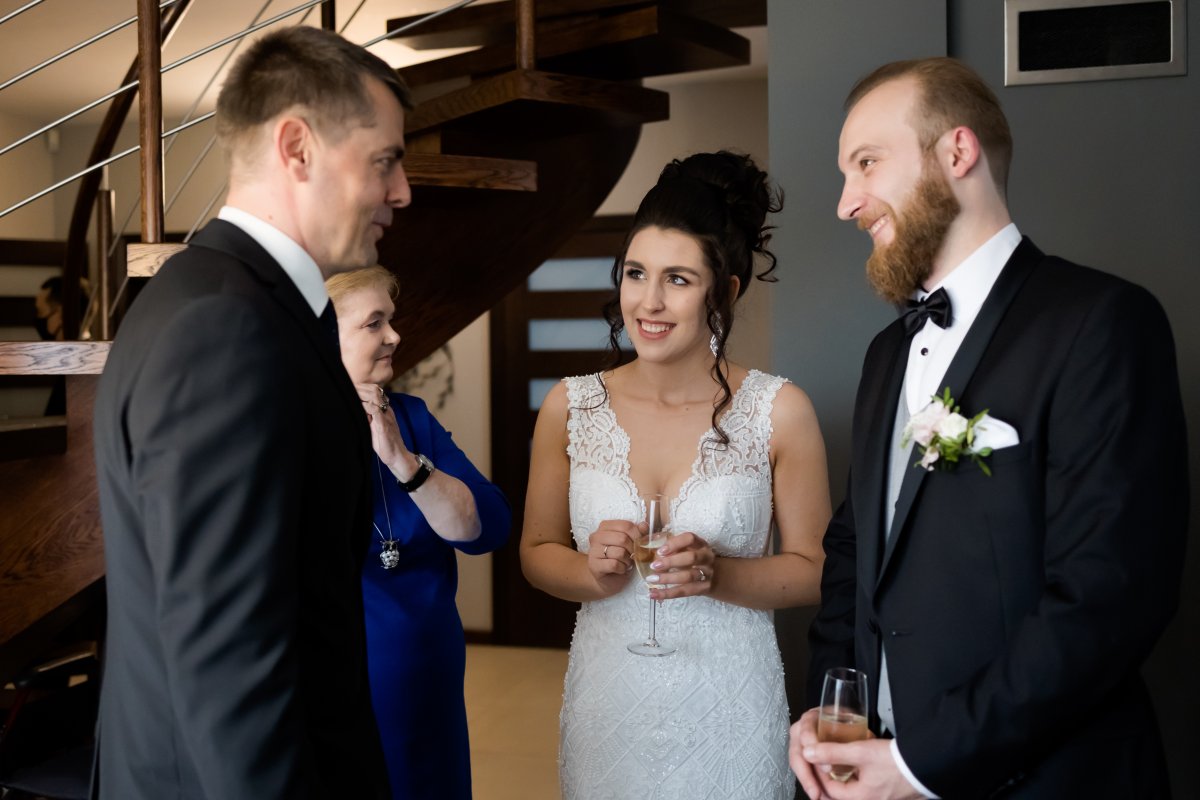 Pięknie wspominamy ten dzień, trochę chłodny, ale pełen ciepła w sercu. Wśród majestatycznych, surowych wnętrz w centrum miasta, a nadal pełen ciepła. Nie wśród wszystkich, którzy początkowo mieli się pojawić na zabawie weselnej, ale nadal otuleni ich ciepłem, chociaż podczas samej ceremonii zaślubin.