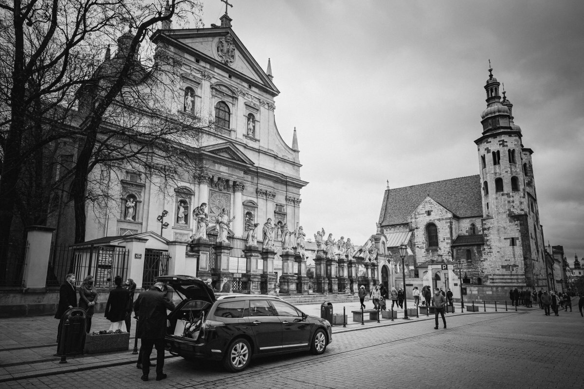 Basia i Marcin wzięli ślub w klimatycznym kościele Apostołów Piotra i Pawła w Krakowie. Uwielbiamy krakowskie kościoły. Mają w sobie coś majestatycznego. Coś, co sprawia, że tak emocjonujące wydarzenie jak zaślubiny staje się jeszcze bardziej dostojne, powabne, duchowe. Idealnie odzwierciedla to dla nas portret Basi w progu kościoła tuż przed rozpoczęciem ceremonii. Pełna zadumy, po prostu piękna.