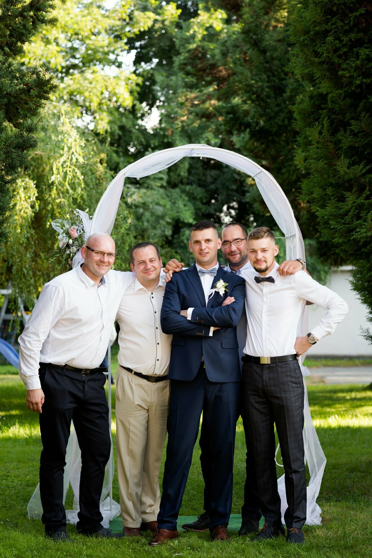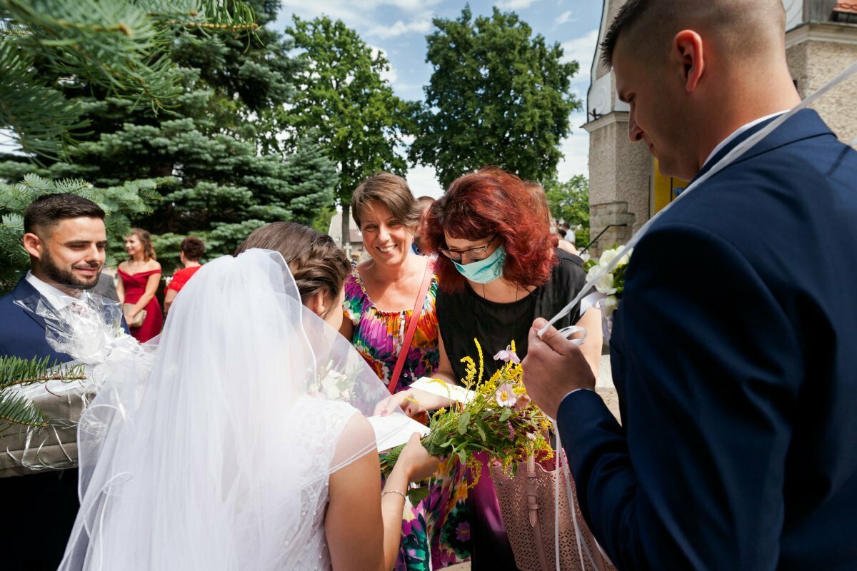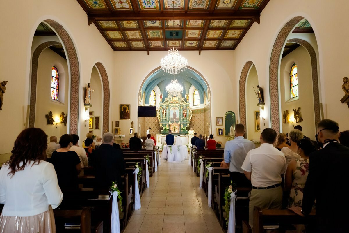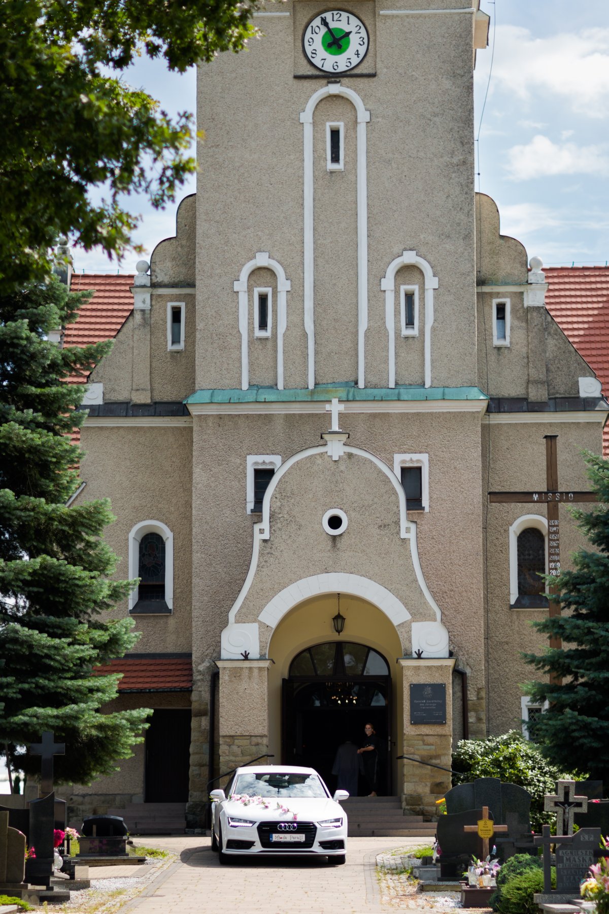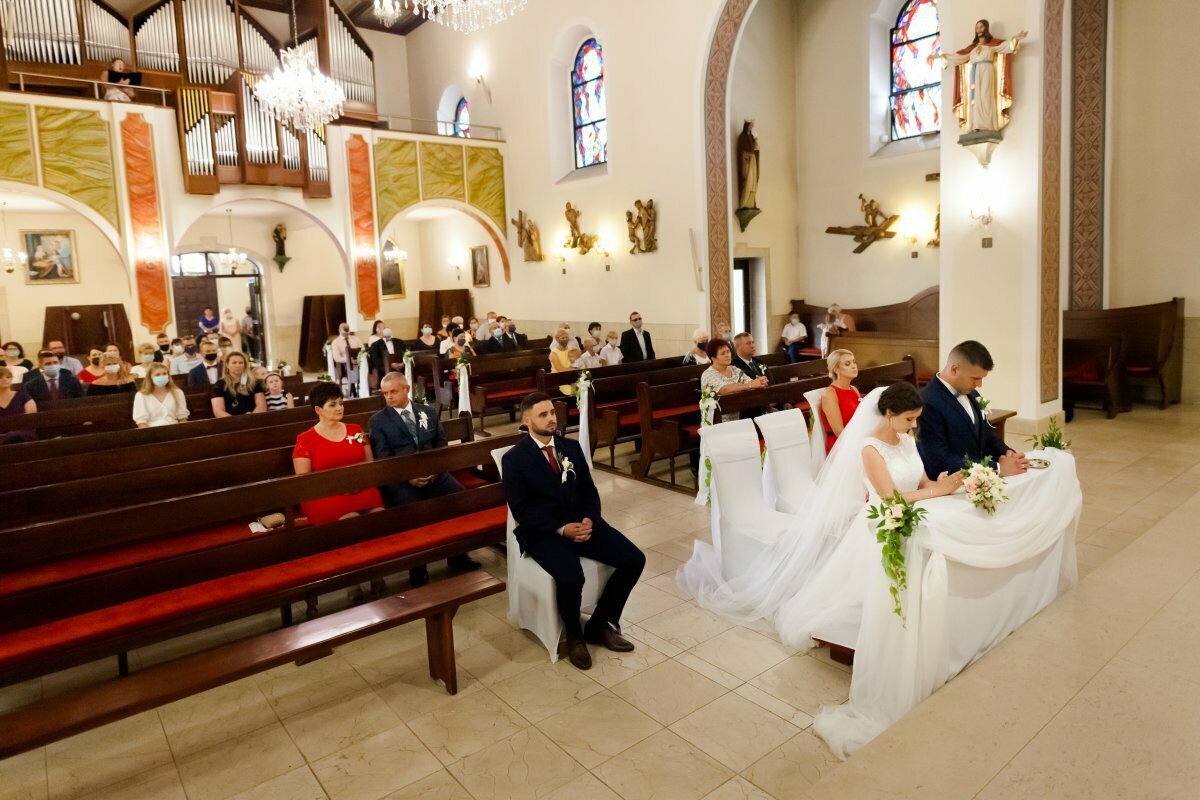 Magda i Sebastian zaplanowali swoje sierpniowe wesele w Dworku Stara Cynkownia. Trzeba przyznać, że idealnie wpasowali się zarówno z terminem, jak i miejscem ślubu, dzięki czemu nie dało się zbyt mocno odczuć panującej pandemii koronawirusa :). Dzień był słoneczny, sierpniowy i, co dało się wyczuć już od samego rana, bardzo radosny. Pan młody przygotowywał się w rodzinnym domu z pomocą mamy, podobnie jak Panna Młoda, kilkadziesiąt kilometrów dalej w swoim domu rodzinnym. Oprócz mamy oraz wizażystki, raz po raz przygotowań doglądał cudowny piesek Ogi, który wszystko miał pod kontrolą :). Romantyczną fryzurę Panny Młodej wykonała wcześniej Izabela Sajbor.