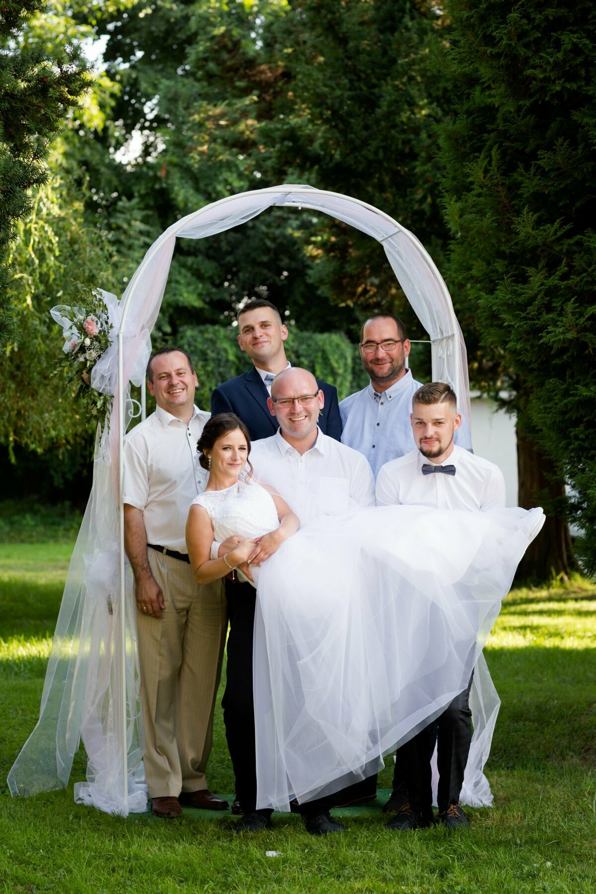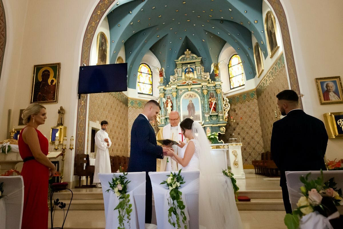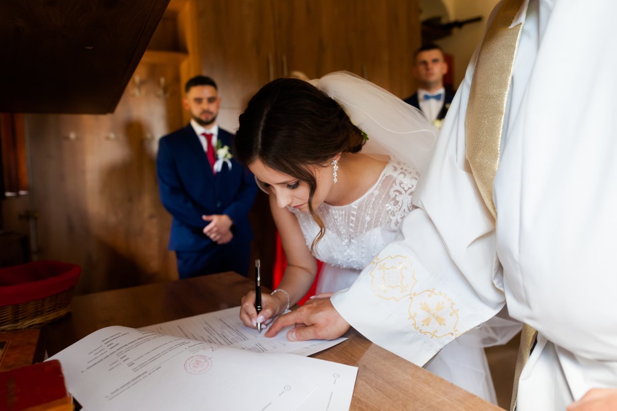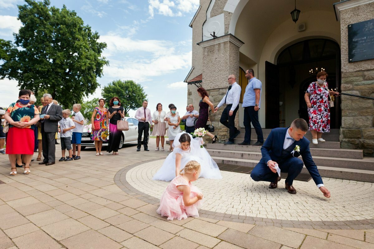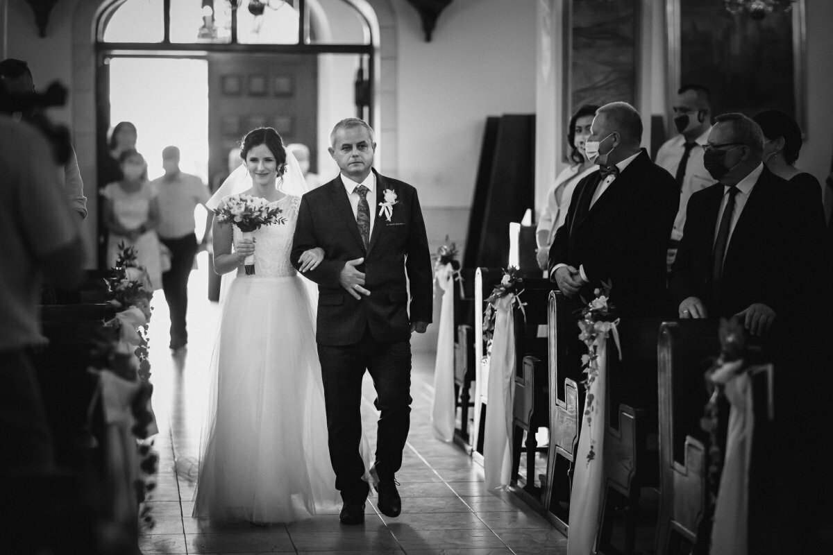 Magda i Sebastian zaplanowali swoje sierpniowe wesele w Dworku Stara Cynkownia. Trzeba przyznać, że idealnie wpasowali się zarówno z terminem, jak i miejscem ślubu, dzięki czemu nie dało się zbyt mocno odczuć panującej pandemii koronawirusa :). Dzień był słoneczny, sierpniowy i, co dało się wyczuć już od samego rana, bardzo radosny. Pan młody przygotowywał się w rodzinnym domu z pomocą mamy, podobnie jak Panna Młoda, kilkadziesiąt kilometrów dalej w swoim domu rodzinnym. Oprócz mamy oraz wizażystki, raz po raz przygotowań doglądał cudowny piesek Ogi, który wszystko miał pod kontrolą :). Romantyczną fryzurę Panny Młodej wykonała wcześniej Izabela Sajbor.