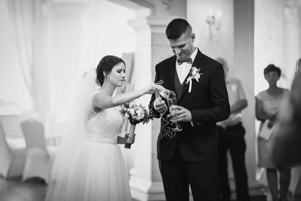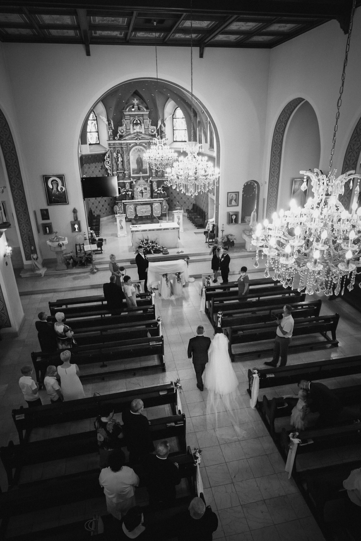 Jak to na Śląsku bywa, zanim Państwo Młodzi spotkali się tego dnia po raz pierwszy, odbyły się tradycyjne wykupiny. Na szczęście udało się przekonać Świadka, aby wpuścił Sebastiana do gotowej już Magdy 🙂 Ślub odbył się w kościele św. Jerzego w Goczałkowicach-Zdroju, zaś na wesele w Dworku Stara Cynkownia w Czechowicach-Dziedzicach. W trakcie wesela udało się nam zrobić kilkuminutowy plener ślubny podczas którego słońce idealnie zagrało otulając Nowożeńców ciepłym światłem. Bardzo lubimy takie ekspresowe sesje w dniu ślubu i zawsze zachęcamy, aby poświęcić im choć kilka minut :).