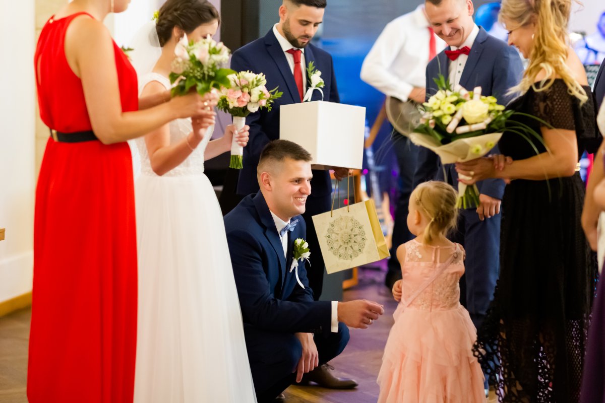 Na przyjęciu już od progu „wołał” Gości słodki stół od Bakus World . Wszystkie kalorie mogli jednak spalić przy szalonej zabawie z zespołem Sweet Song, który zadbał również o najmłodszych… W trakcie wesela pojawił się uwielbiany przez wszystkich Minionek! Na koniec nie bylibyśmy sobą gdybyśmy nie wykorzystali klimatycznego nocnego nastroju przy sali weselnej… I tak ślubny reportaż zamyka romantyczne nocne zdjęcie Magdy i Sebastiana. Zapraszamy do oglądania zdjęć, a Młodą Parę serdecznie pozdrawiamy i raz jeszcze życzymy wszystkiego najlepszego!