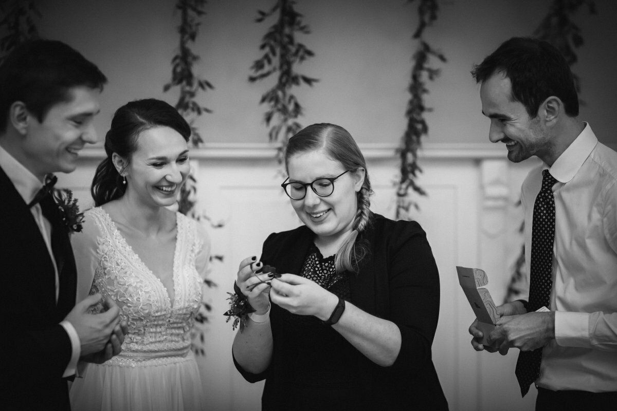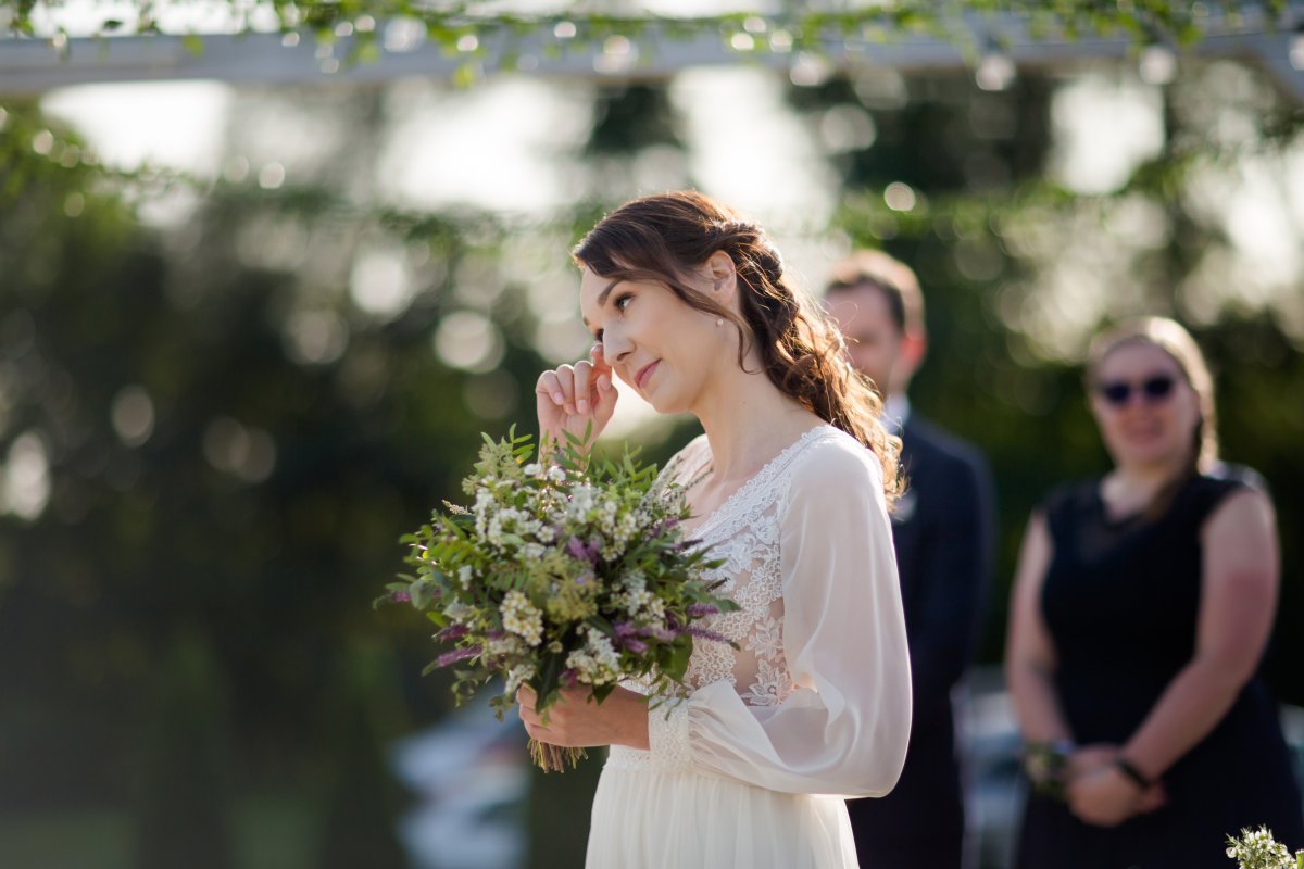 Ceremonia zaślubin była przepiękna – Eliza i Mateusz ślubowali a ciepłe, jesienne słońce tylko dodawało jeszcze większego ciepła ich miłości. Bliskość natury dodaje zawsze szczególnej magii takim momentom.