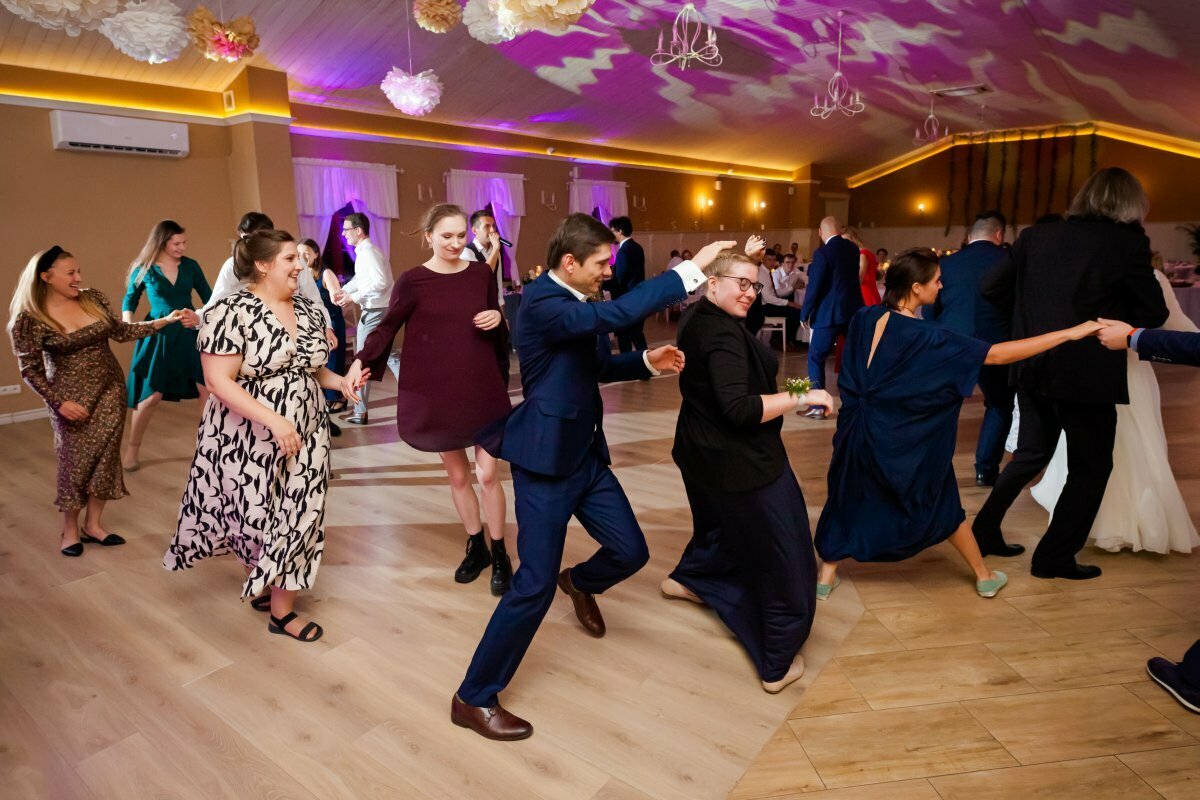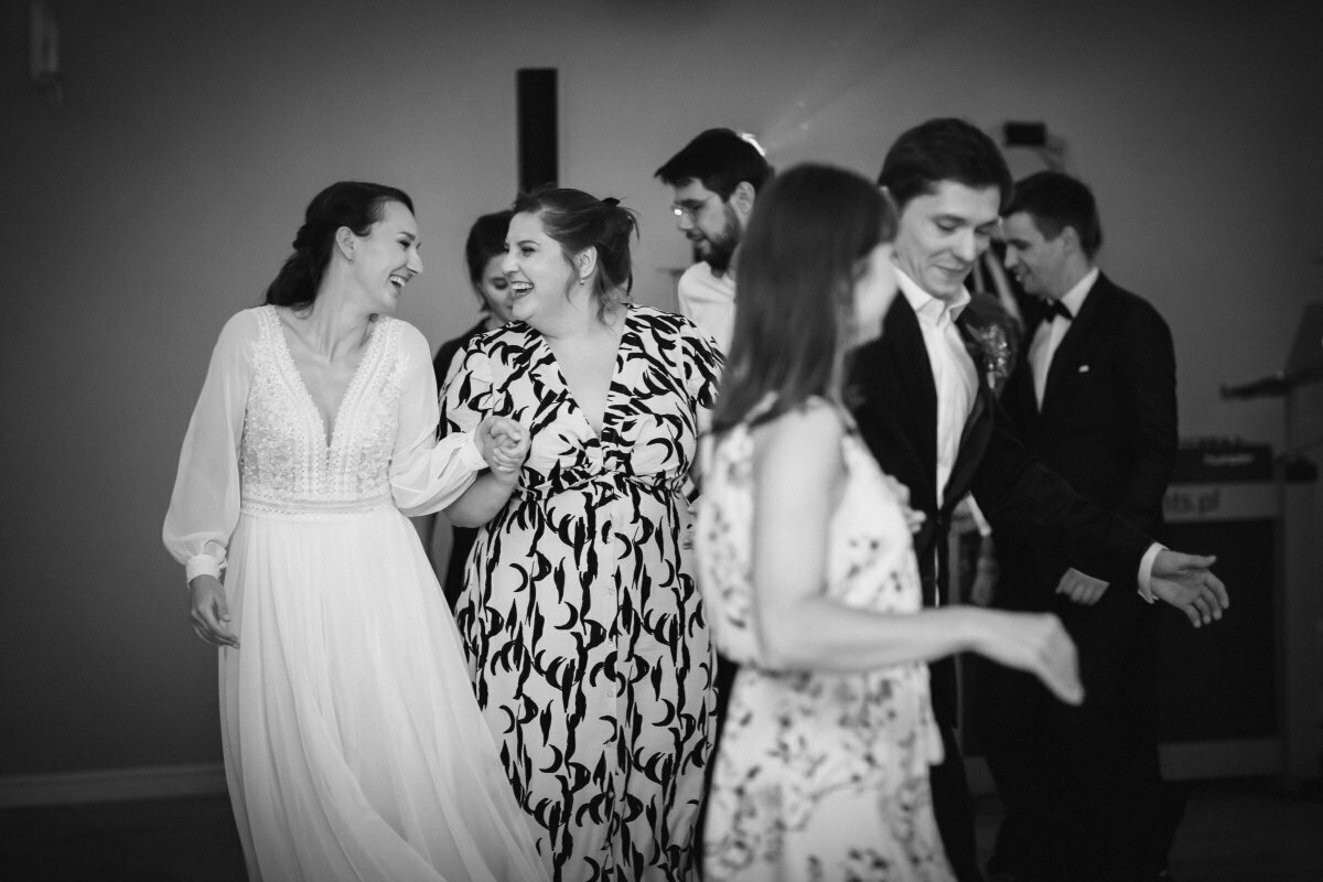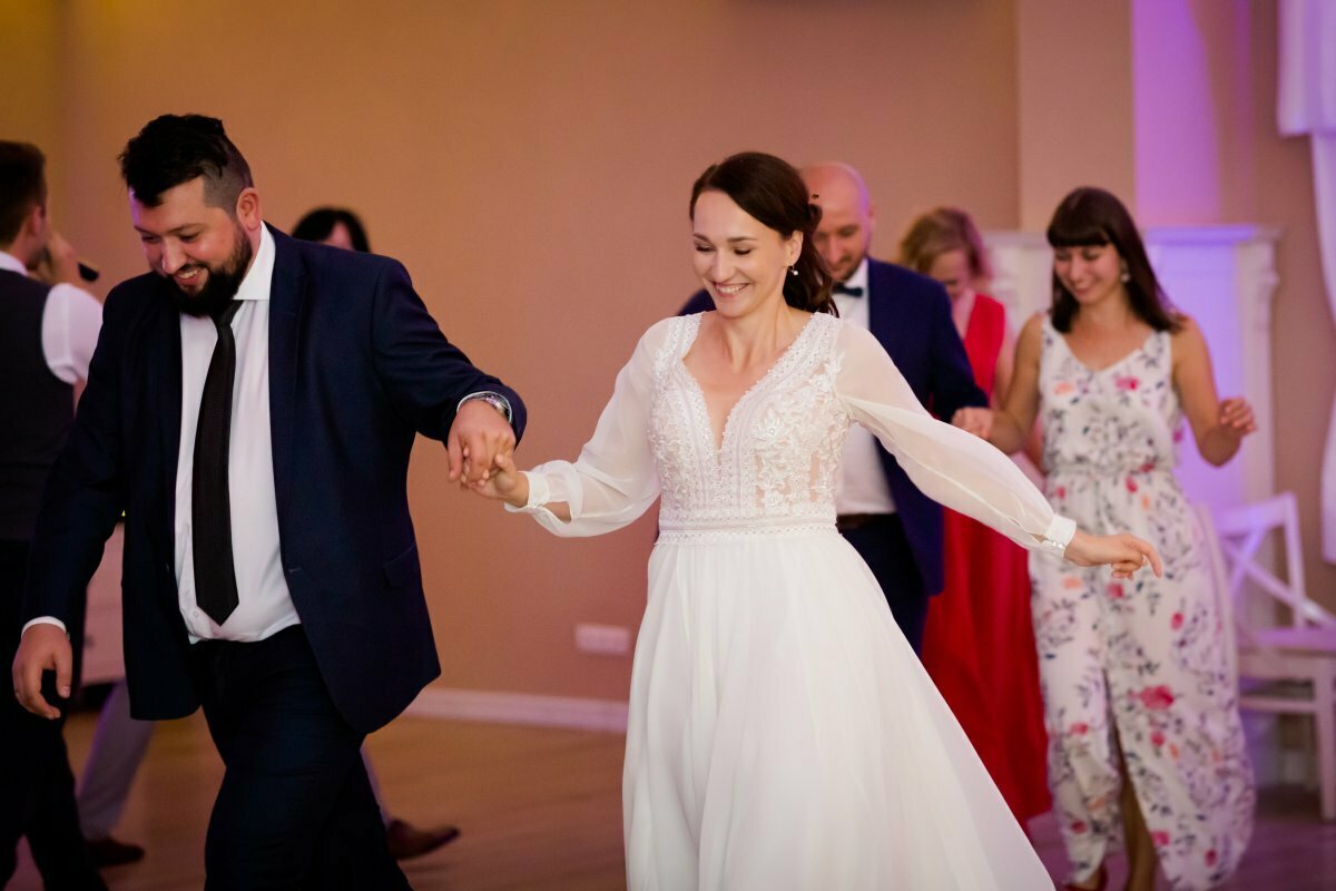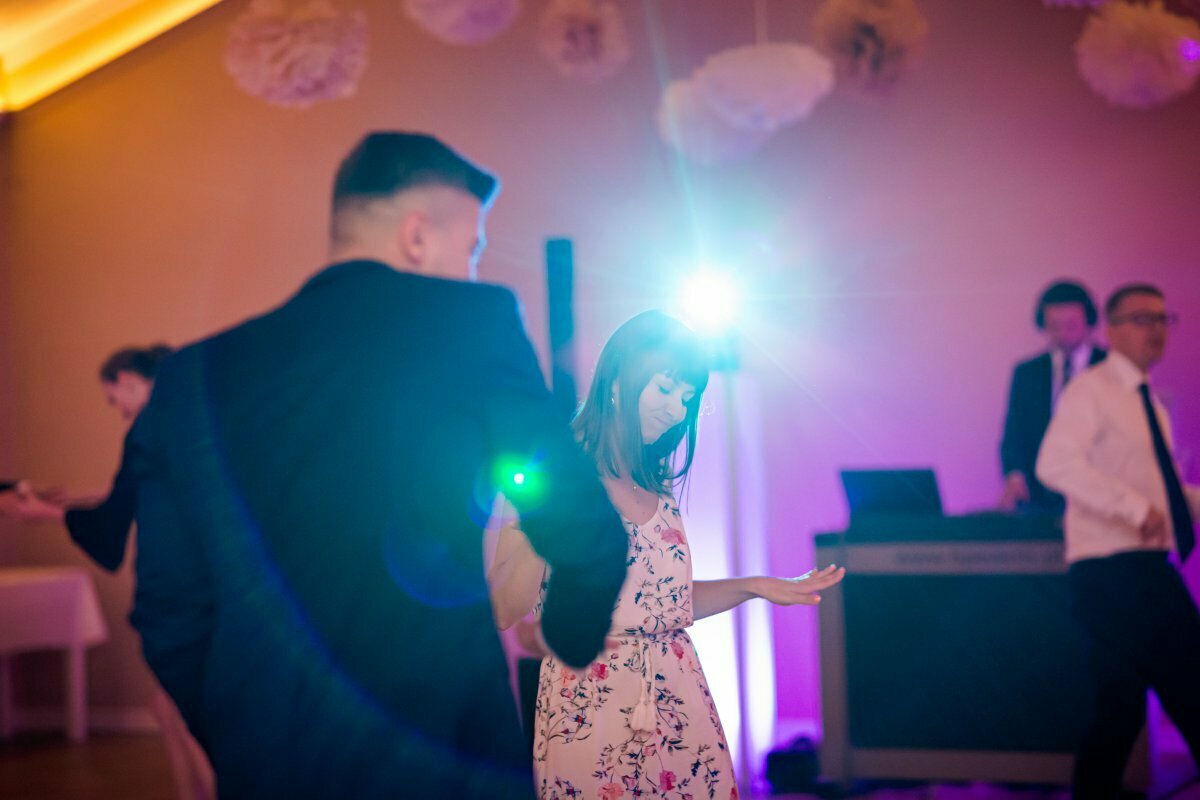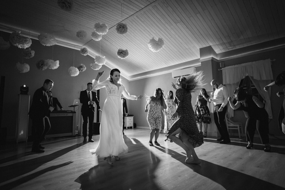 Po pięknej ceremonii i sesji wszyscy mogli zacząć się bawić na weselu, z oprawą muzyczną BP Events. Był ogień! Były tańce, nawet pogo, był latający Pan Młody…. zdecydowanie działo się!