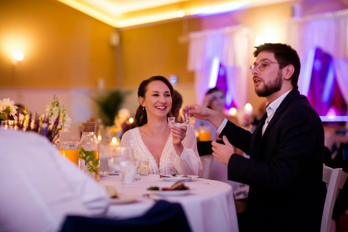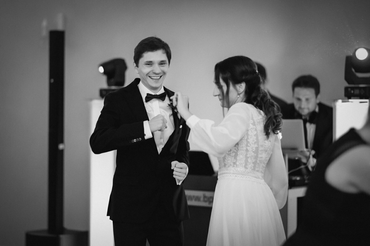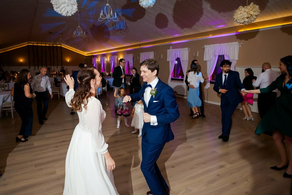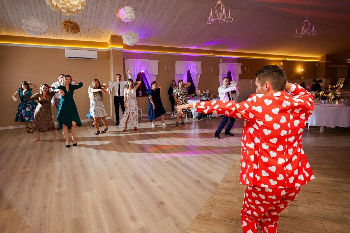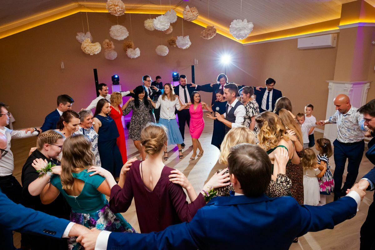 Po pięknej ceremonii i sesji wszyscy mogli zacząć się bawić na weselu, z oprawą muzyczną BP Events. Był ogień! Były tańce, nawet pogo, był latający Pan Młody…. zdecydowanie działo się!
