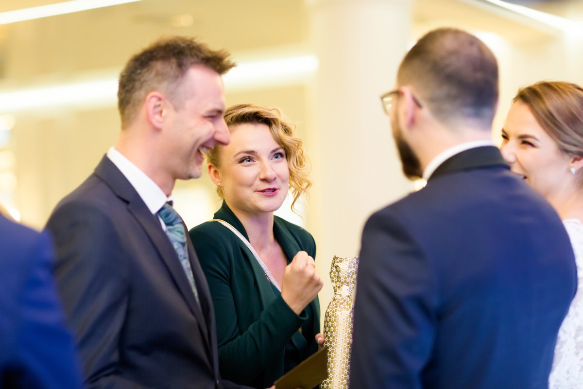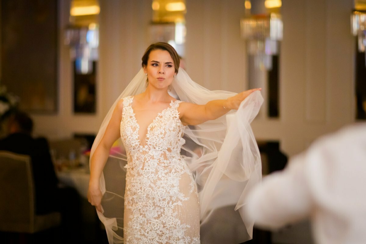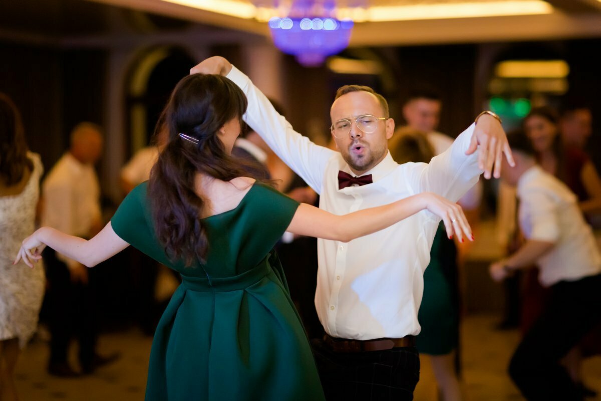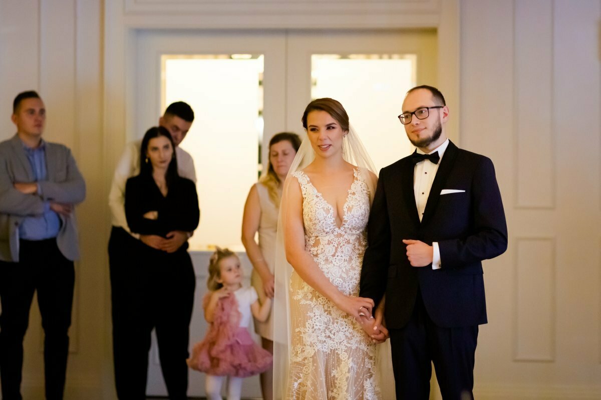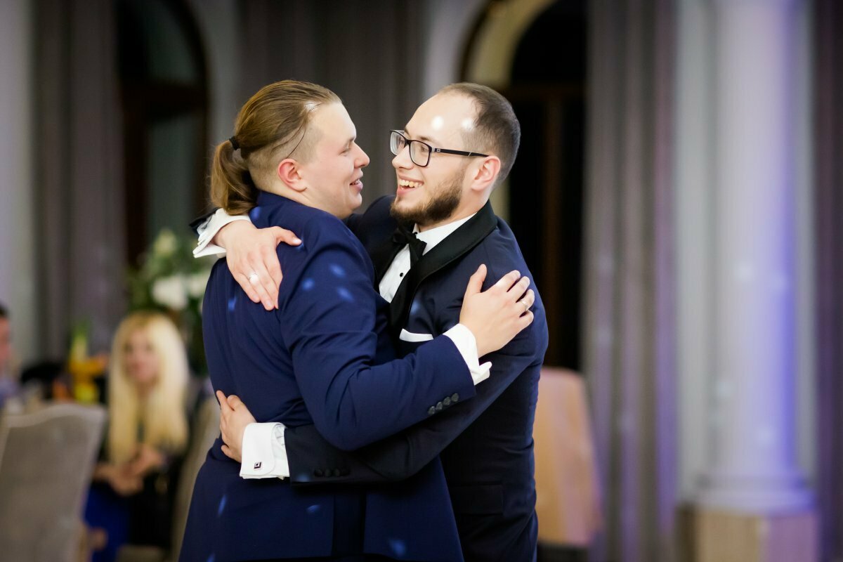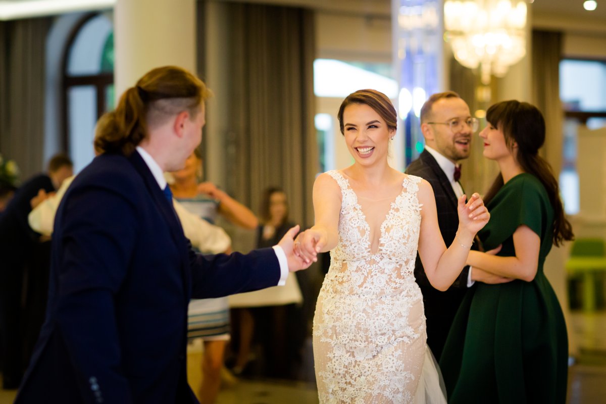 Pierwszy taniec Młodej Pary również na pewno zapadnie wszystkim w pamięć. Magiczny, elegancki i perfekcyjnie zatańczony, a na dodatek zakończony cudownie szczęśliwymi uśmiechami Nowożeńców. Taniec w chmurach to idealne określenie, bo oprócz widocznych obłoków – był po prostu boski!