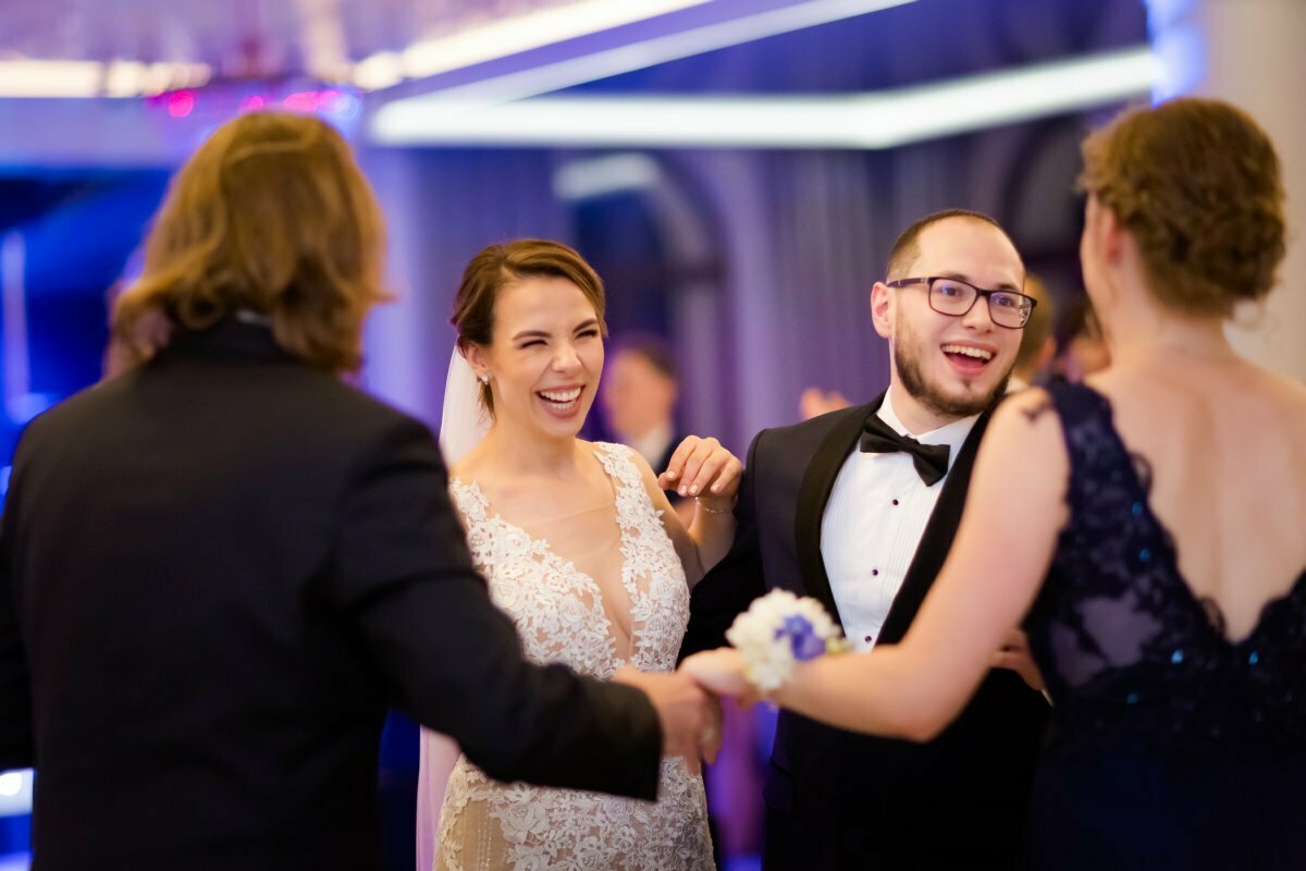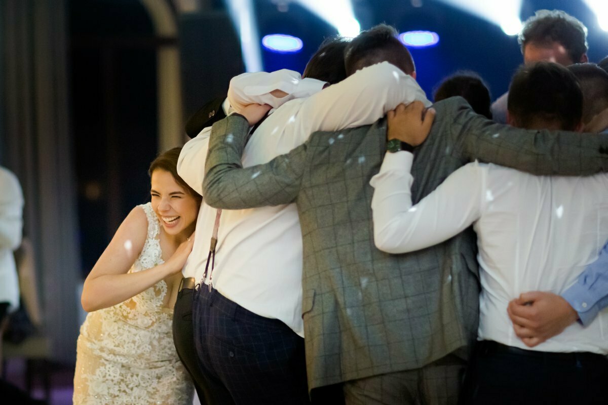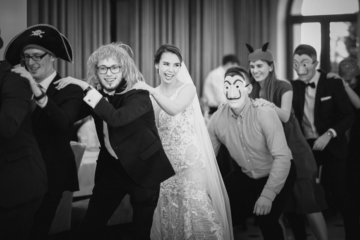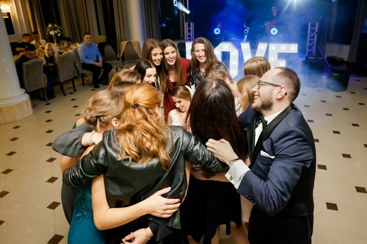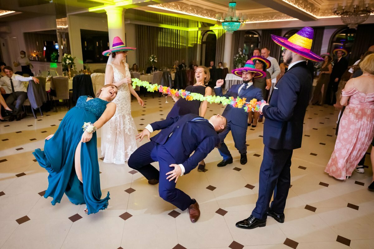 Można by tak długo wymieniać i się zachwycać… wspaniali Goście, świetna zabawa, przeurocze druhny – siostry Panny Młodej, wzruszające podziękowania dla rodziców, dla świadków… magiczne słońce, które zajrzało na chwilę na salę weselną… zespół muzyczny, który grał tak, że czuliśmy się prawie jak na koncercie… klimatyczne zimne ognie (mimo sporego już chłodu przyjaciele Ani i Łukasza byli dzielni! )… Ach, nie moglibyśmy jeszcze nie wspomnieć o niesamowitych pokazach tanecznych, które przygotowała siostra Panny Młodej wraz ze swoim zespołem. To były chwile, gdy wszyscy mieli na ustach wielkie WOW!